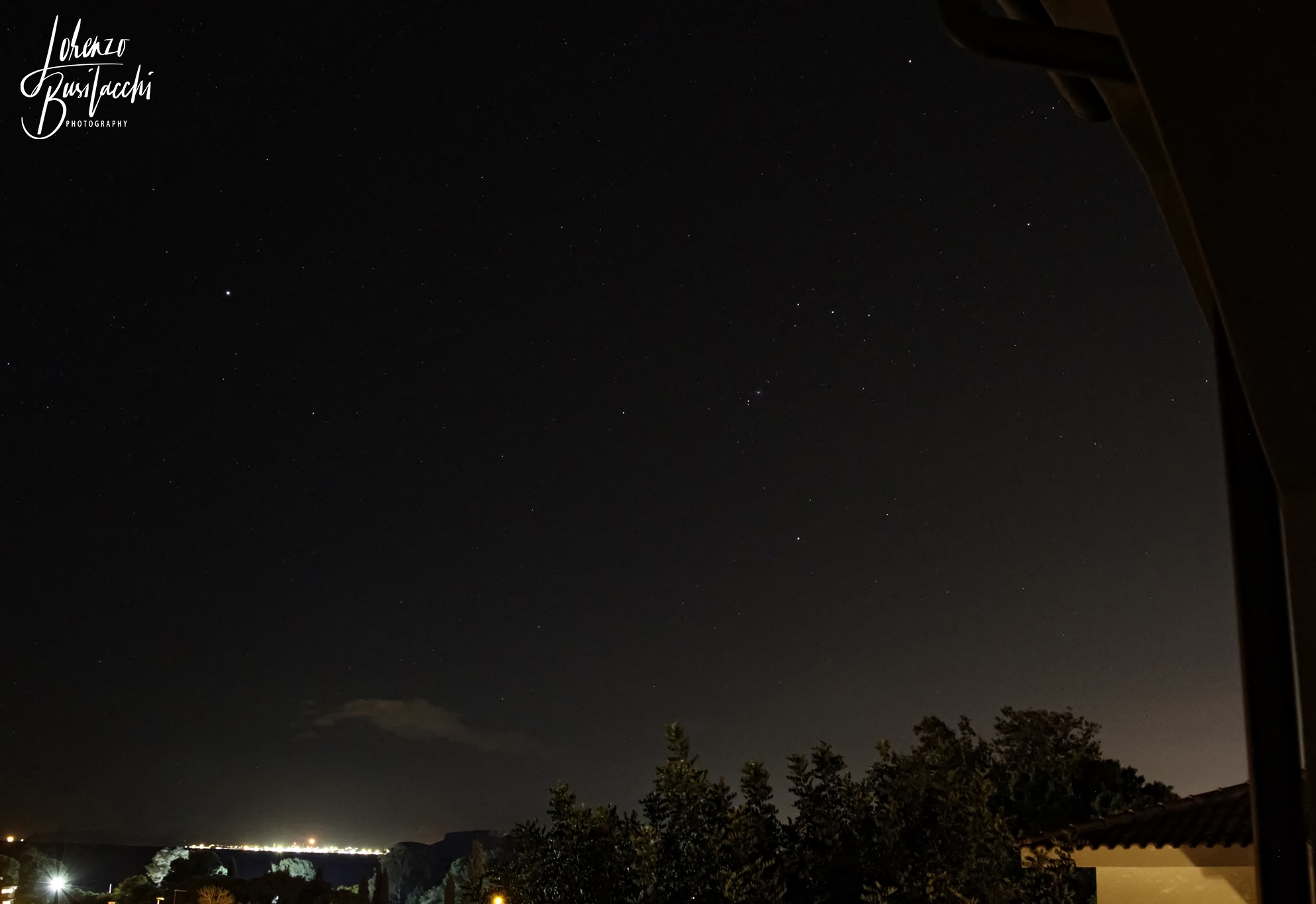 Dal balcone della propria camera, spesso si rimane affascinati dal panorama, o più semplicemente dalle costellazioni, colto dalla passione per il cielo, ho immortalato il momento di Orione e panorama verso Ovest.