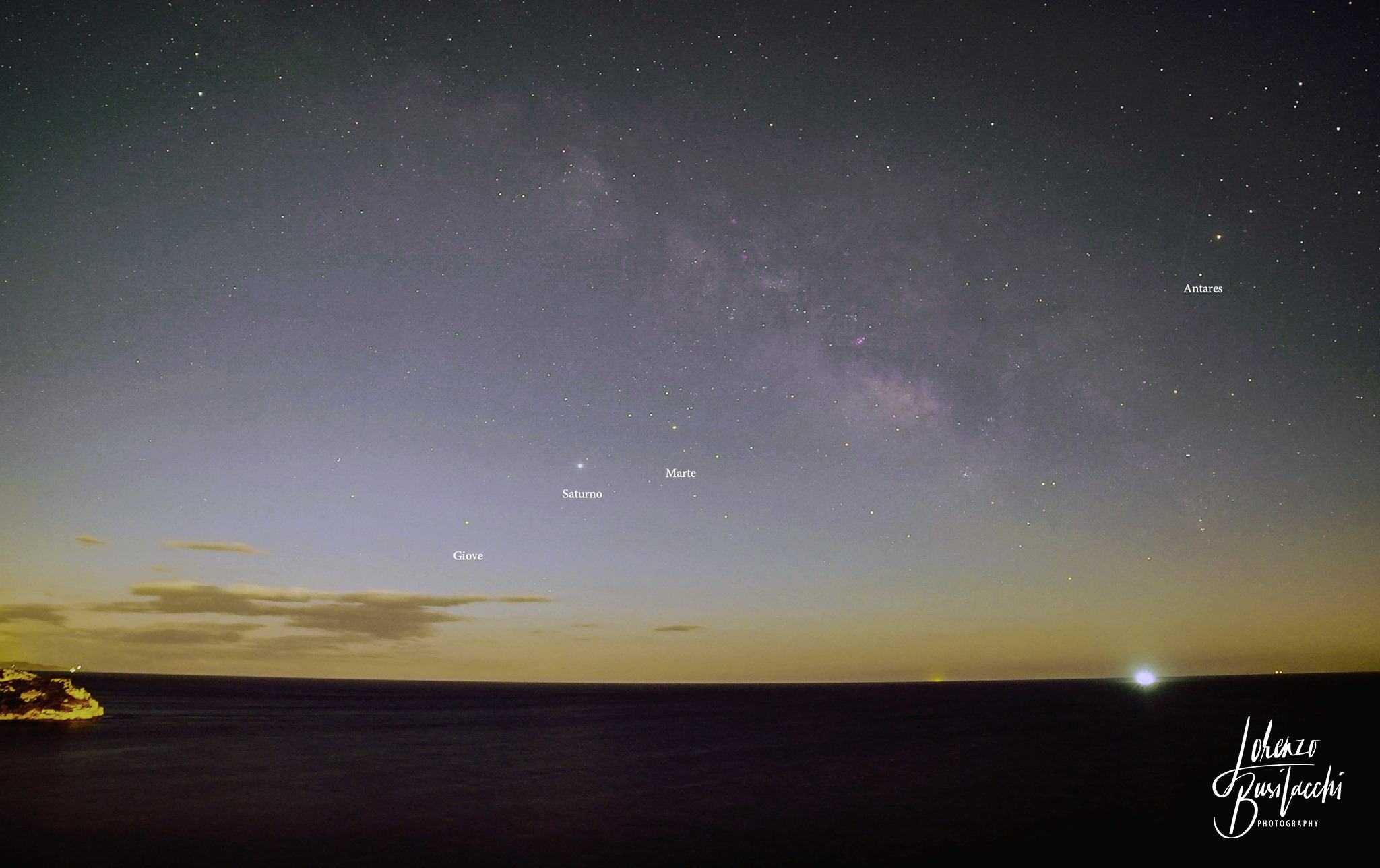 In questo splendida location quale il faro di Calamosca Cagliari (Sardegna), ho ripreso la prima via Lattea di stagione e in progressione i tre pianeti.