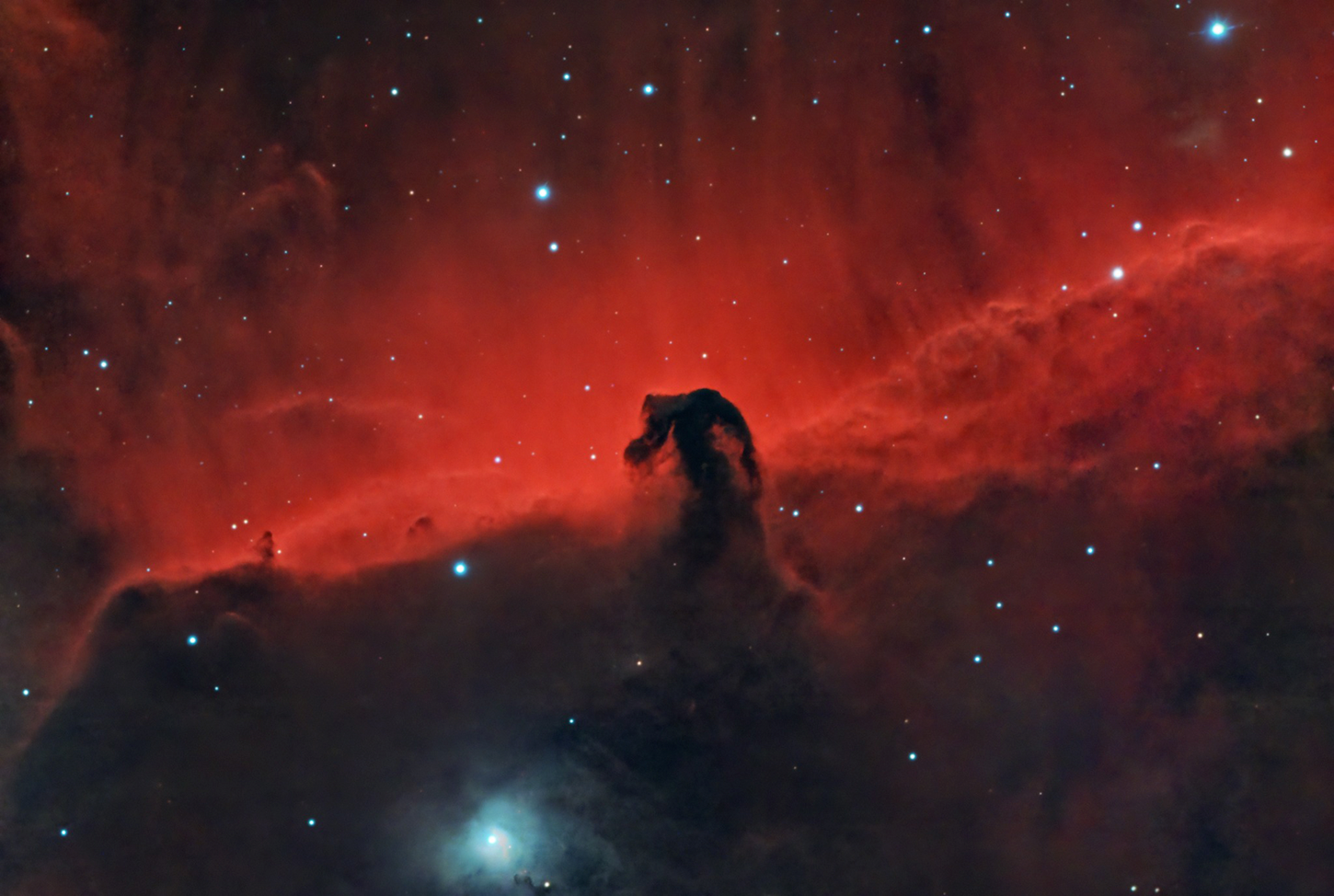 Horse nebula Orion Target IC 434 o (B33) Distanza circa 1500 a.l. Costellazione Orione Montatura AZEQ6 Pro, Optolong L-enhance 2″ Telescopio C11, lunghezza focale 1625 mm f6.3 Telescopio guida Skywatcher 70/500 f7.1 Acquisizione ASI 2600 MC Pro -5° gain 100 Camera guida ZWO ASI 120 mini MM ZWO EAF, Asi Air Plus + Zwo EFW 5X2″ Lights 83 × 120 ″ 2 ore e 46′ Astro Pixel Processor stacking Pixinsight + Photoshop + RC Astro Località: Margine Rosso Quartu, Sardegna, Italia Data: 12/01/2026