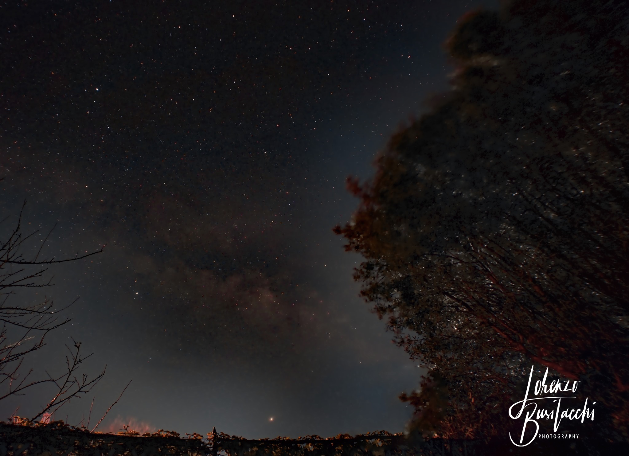 Emozionante Via Lattea tra i cipressi dalla propria abitazione, nonostante il seeing non buono, il risultato c’è.