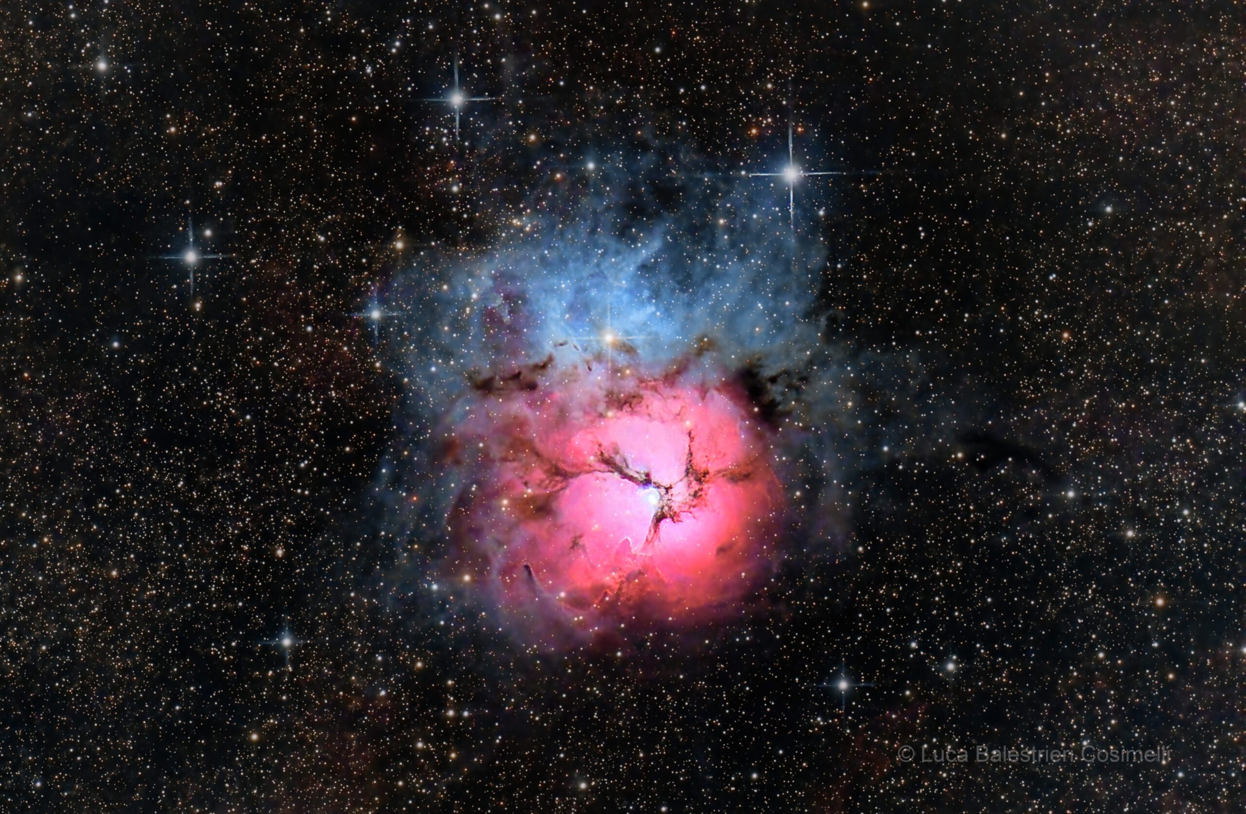 M20 è una nebulosa a emissione associata ad una regione H II visibile nella costellazione del Sagittario, la sua distanza dalla Terra è di circa 5200 anni luce.