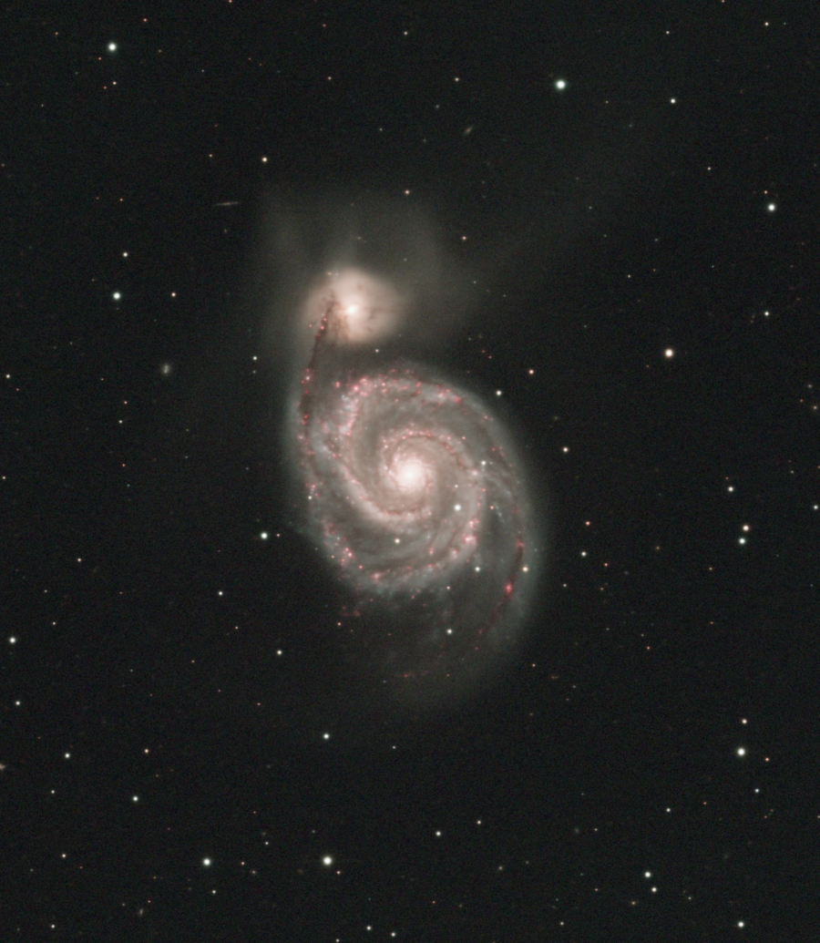 La galassia M51 ripresa in RGB con l’aggiunta dei dati in banda stretta in Ha.