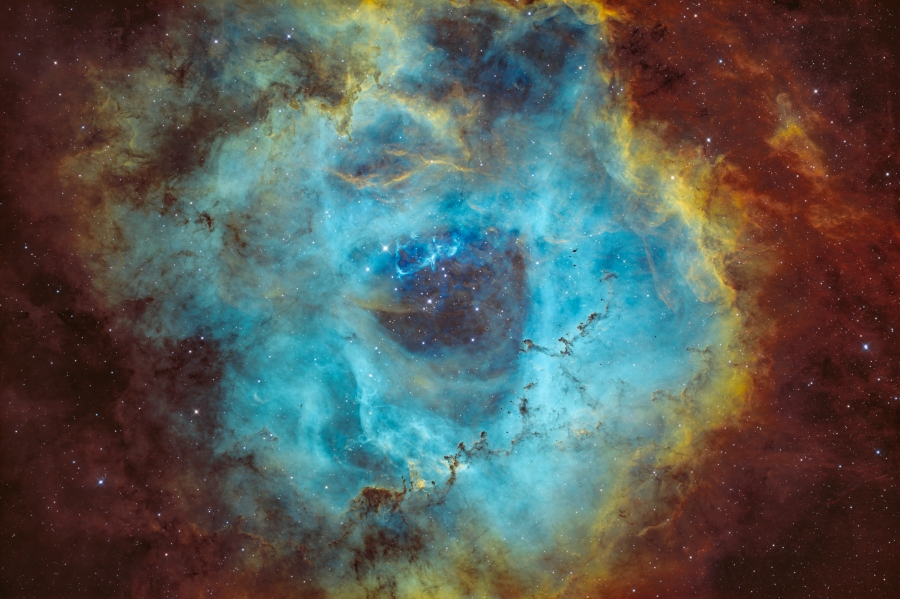 Nebulosa Rosetta, ripresa in più notti da 15/02/2025 al 19/03/2025. Per un totale di 30h, 10h per canale SHO. Telescopio Artec 200 e camera Touptek 571 @-10°C.