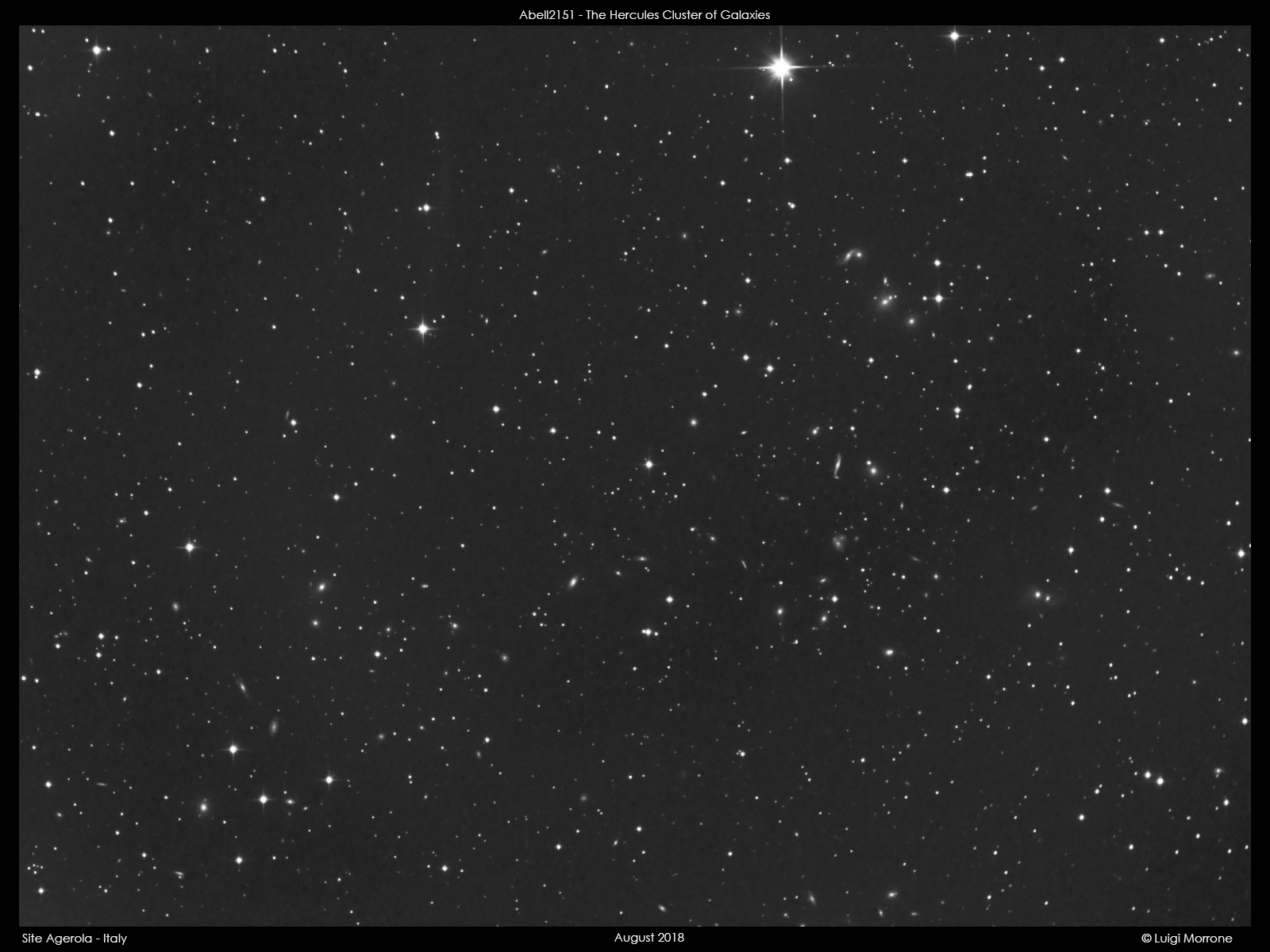 L’amasso contiene numerose galassie spirali e diverse galassie interagenti. Per la full resolution cliccare il link sopra.