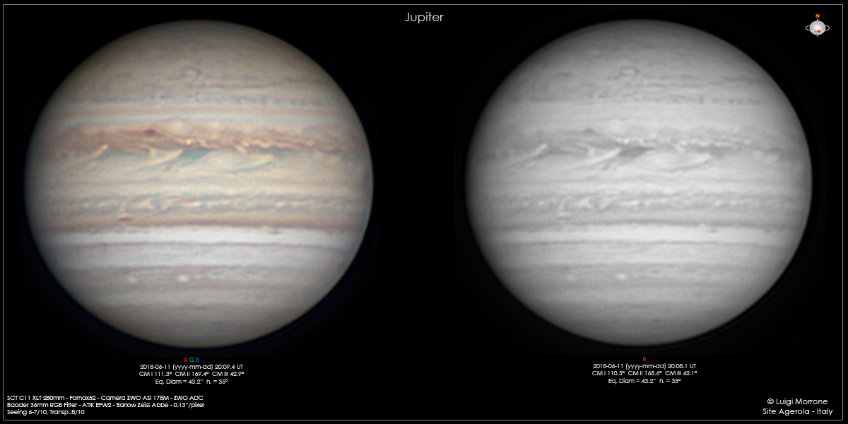 Ripresa del Gigante Gassoso con condizioni di buon seeing. Dettagli fini presenti tra le varie regioni (NEB, SEB,ecc) e le regioni polari.