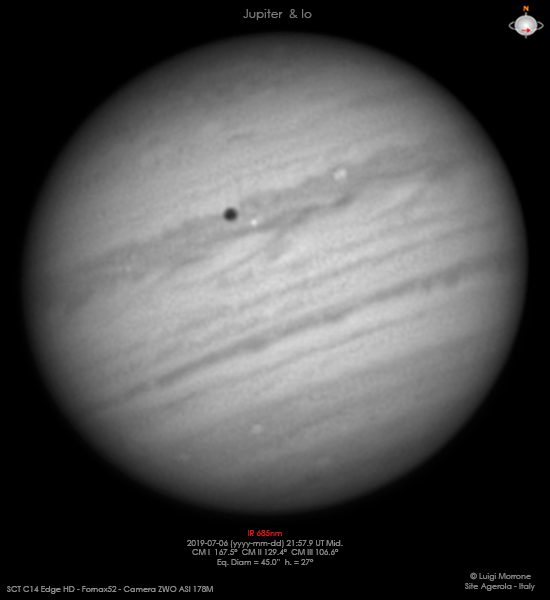 Giove con il transito di Io e la sua ombra proiettata sul Gigante gassoso.
