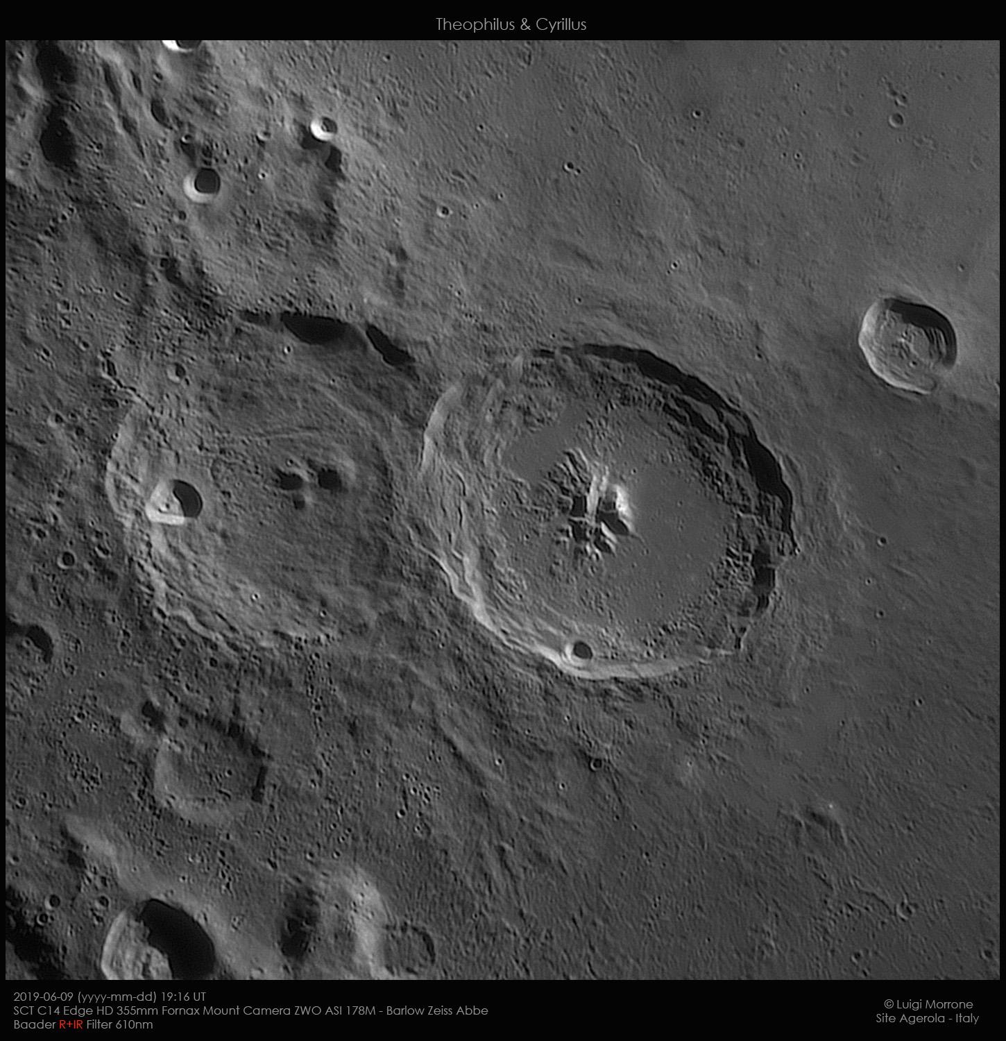 Crateri Theophilus e Cyrillus ripresi in alta risoluzione.