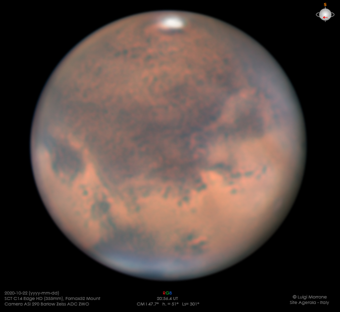 Clouds on the f limb as well as in the Northen Polar Hood.