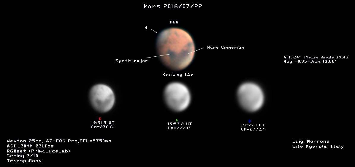 La ripresa mostra la Syrtis Major (Grande Sirte) ovvero una regione di origine vulcanica fortemente contrastante con i deserti che la circondano, Mare Cimmerium, Elysium e le caratteritiche calotte polari.