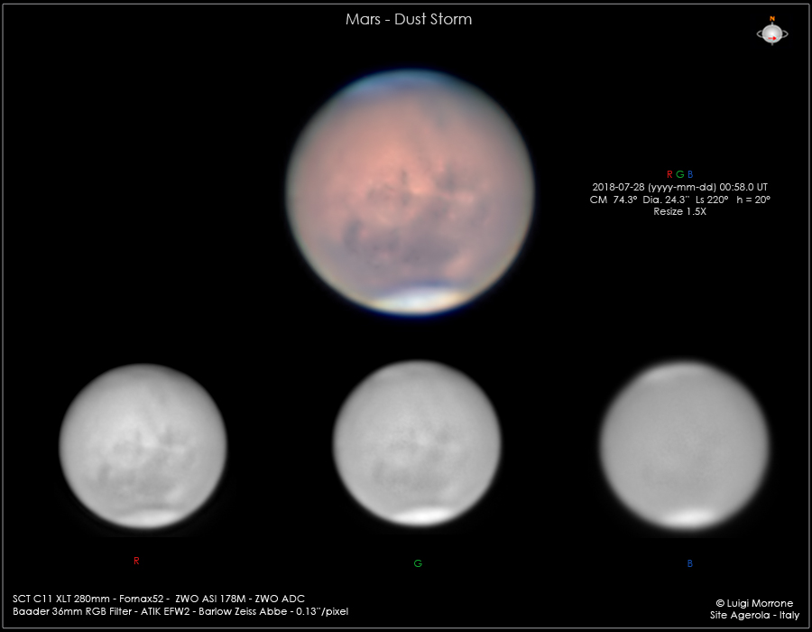 Sul pianeta Rosso la tempesta di sabbia fa sentire ancora i suoi effetti e ciò rende difficile la ripresa di maggiori dettagli superficiali.