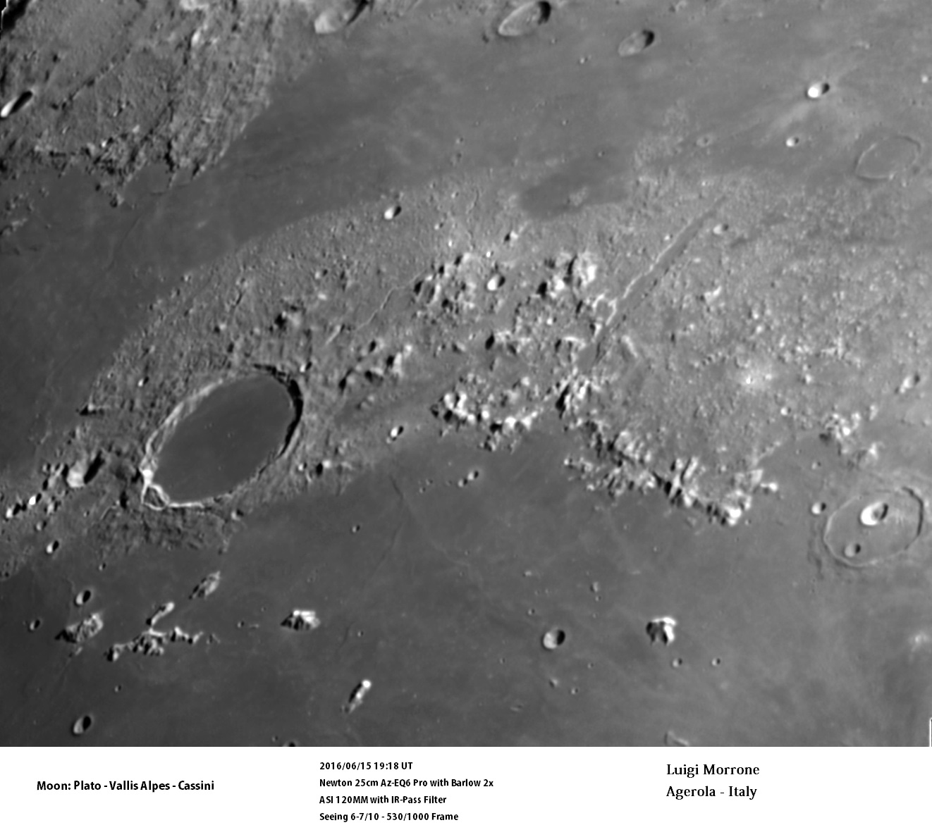 La ripresa che vi mostro è stata effettuata qualche giorno prima del solstizio d’estate. Seguiranno altre due riprese per dettagli della Vallis Alpes e di Plato