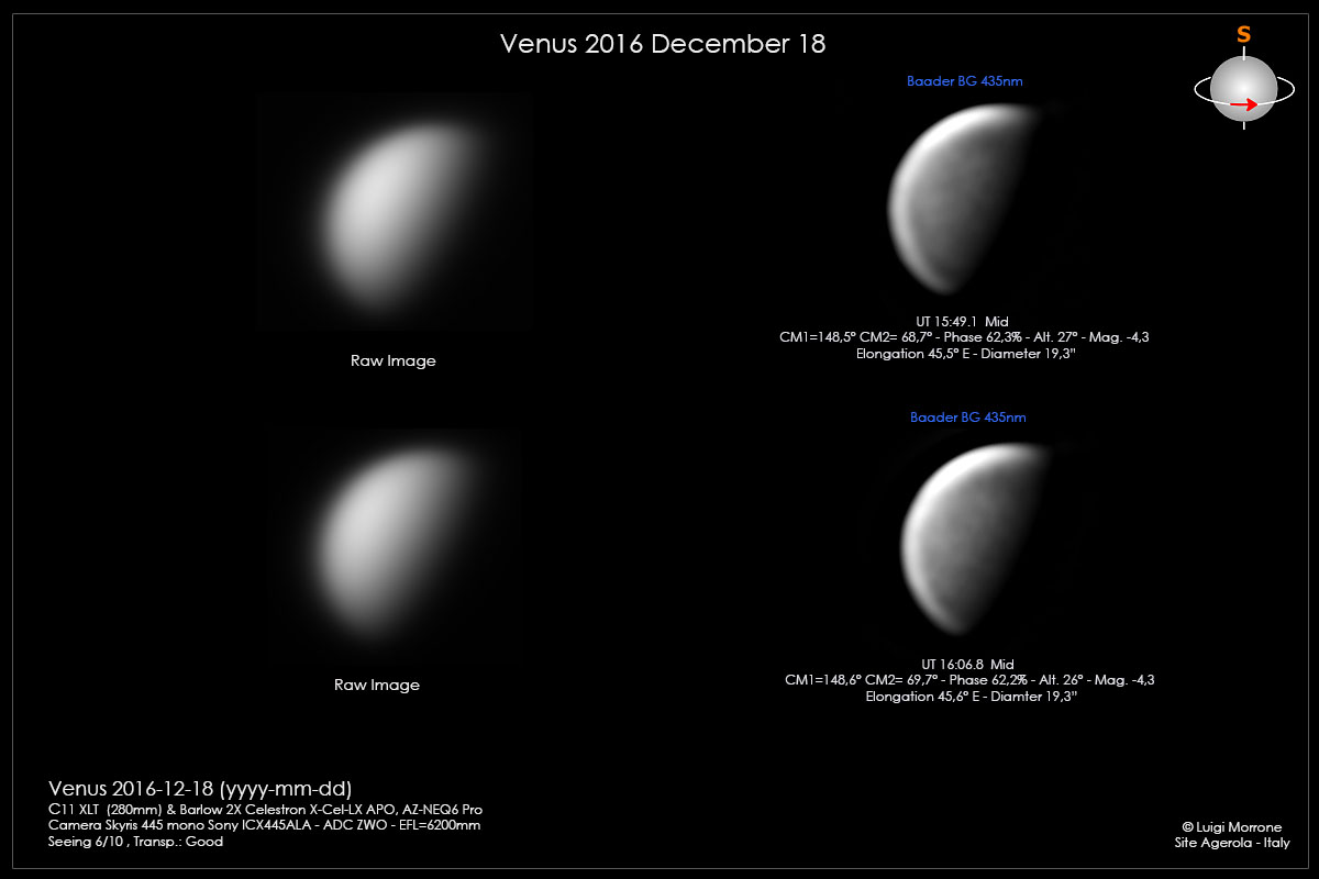 Ripresa di Venere con filtro Baader BG 435nm SCT C11 XLT (280mm) e ccd Skyris 445M.