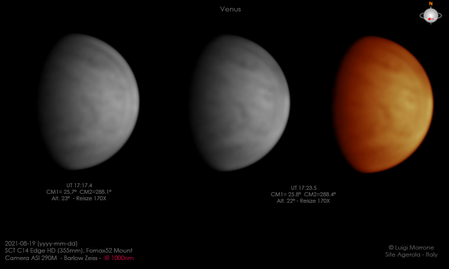 Venus images taken on August 19, 2021. A 1 micron filter has been used.