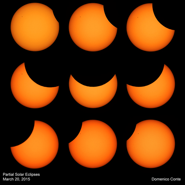 sequenza dell’eclissi di sole parziale ripresa dalla provincia di Bari con un telescopio newton 200/1000