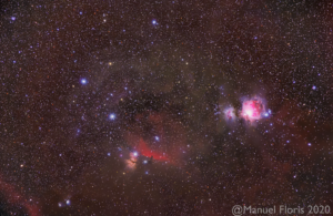 La zona della costellazione del Cigno compresa fra Deneb e Sadr è tempestata di varie nebulose ad emissione immerse nelle polveri della Via Lattea. Complice un cielo scuro, bassa umidità e vento assente con un buon seeing, grazie ad un astroinseguitore ed una reflex modificata, mentre riprendevo altri oggetti con il telescopio principale, mi sono deidcato a questa bella zona del cielo.