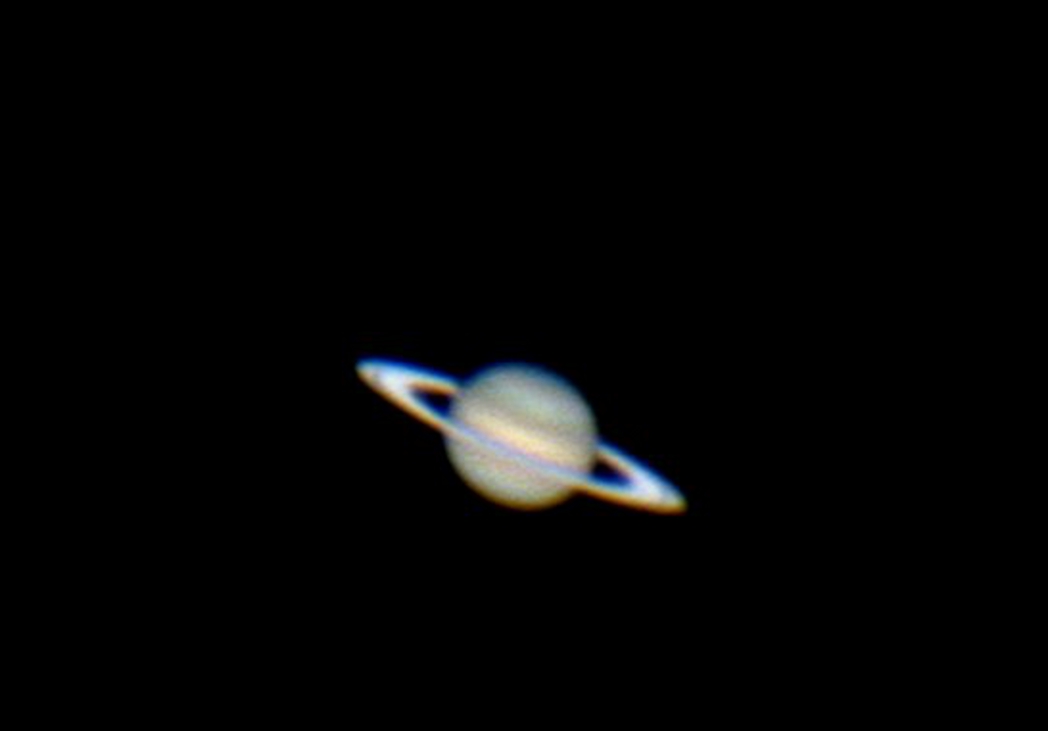 immagine di saturno tratta da filmato con neximage di 500/3000 frames eleborati con registax, wavelet dyadic, barlow 2x, croppatura e riscalatura