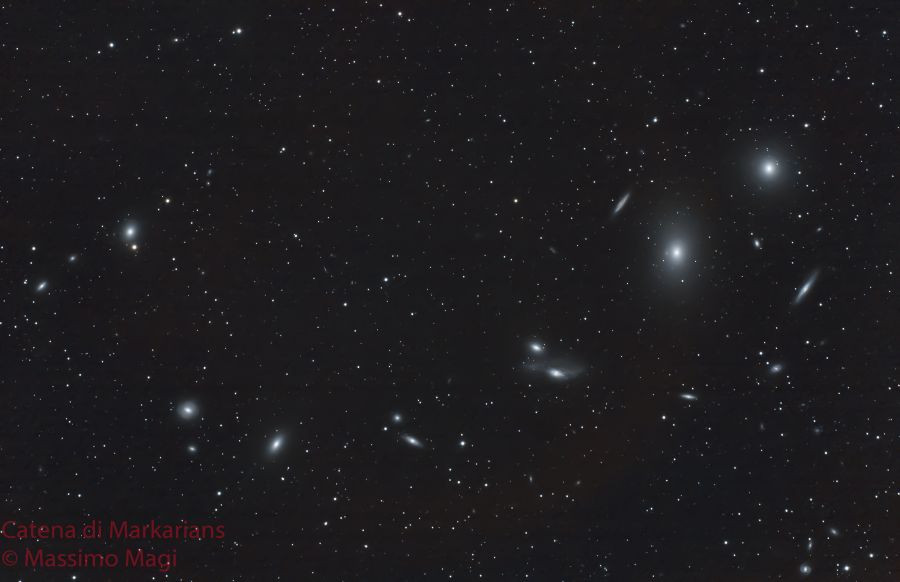 La catena di Markarian sembra formare uno schema ad arco, con 7 o più galassie che