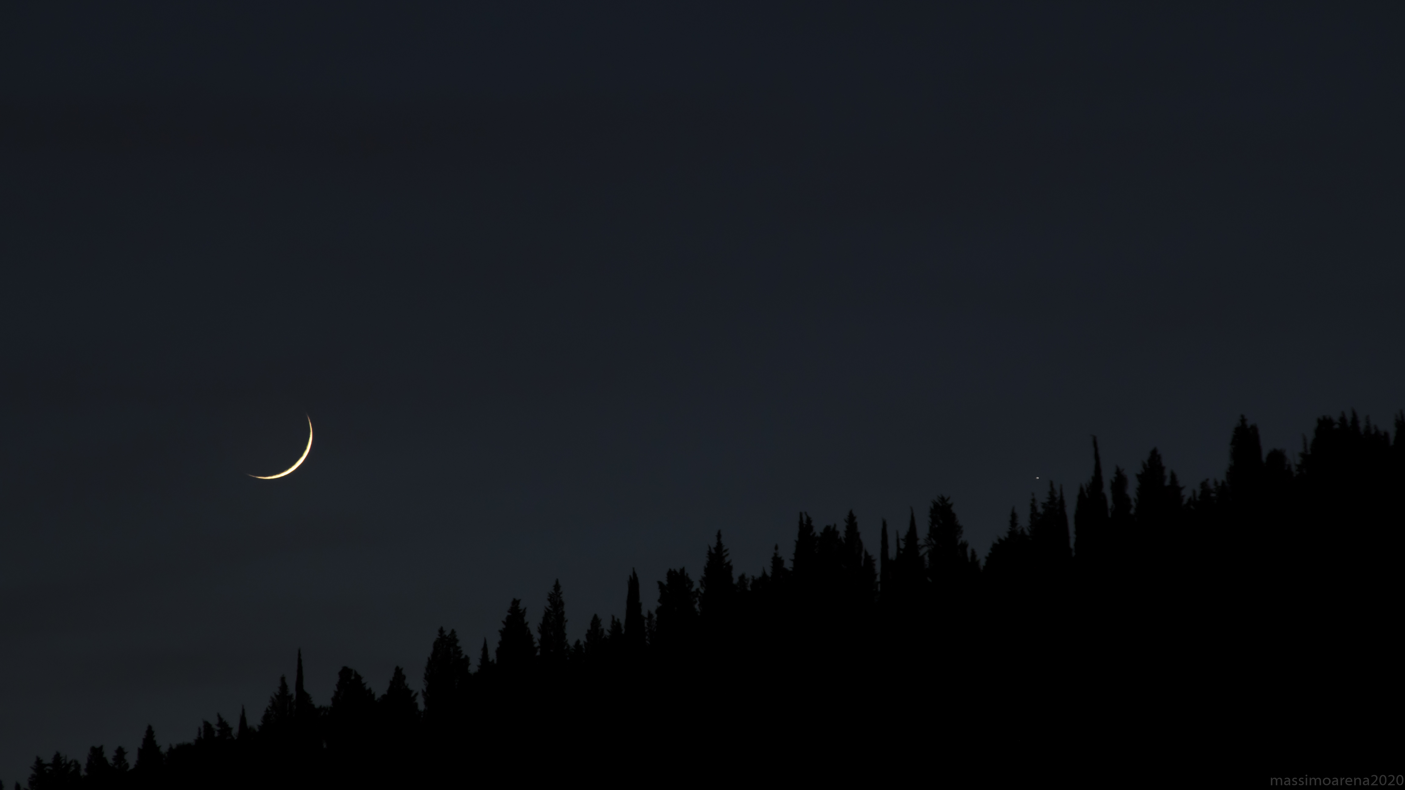 Luna e Mercurio in congiunzione la sera del 24 maggio, ripresa dalle colline tra Sesto Fiorentino e Settimello (Fi) pochi istanti prima del tramonto del pianeta