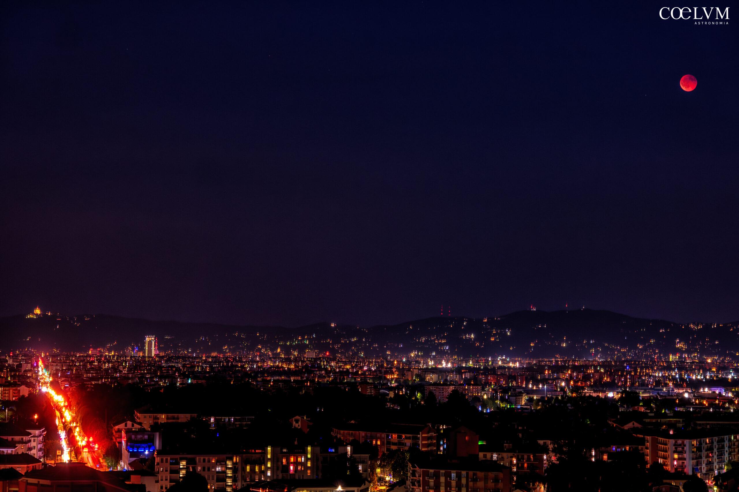 Ho raggiunto la collina del Castello di Rivoli, che gode di una splendida vista su Torino, per riprendere l’evento. Purtroppo, la Luna si è mostrata già un po’ alta nel cielo, a questo scatto mi è comunque parso ricco di fascino e di particolari ben noti a chi conosce la mia città.