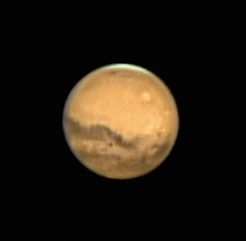 Marte ormai all’opposizione. Marte nella notte del giorno 4 Novembre, ripreso tra una nuvola e l’altra con seeing nemmeno buono