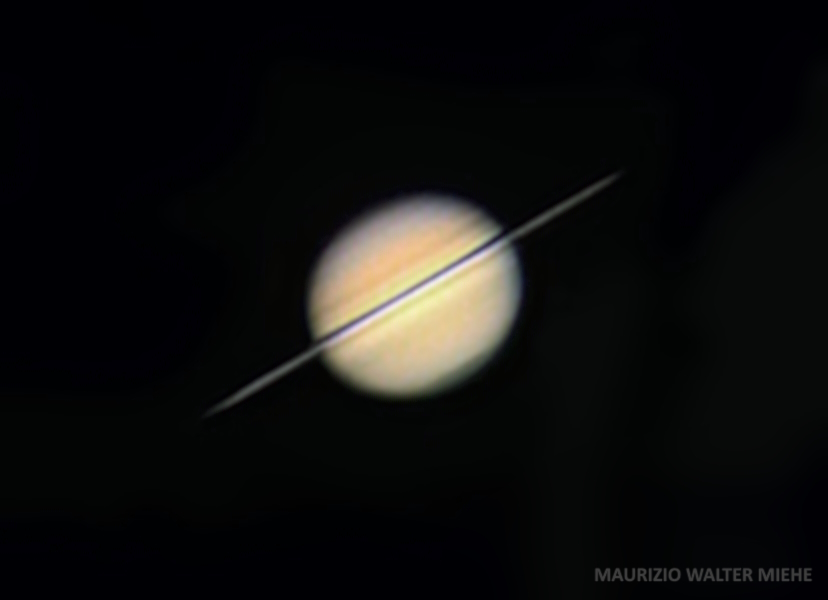 A quasi due mesi dall’opposizione una serata di buon seeing (finalmente!) ha permesso una buona ripresa del pianeta che in questo periodo mostra gli anelli di taglio al loro minimo di visibilità dalla terra. Celestron C 9.25 XLT @f/20 – SkyWatcher HEQ5 PRO Camera PlayerOne Neptune CII Filtri: IR Pass 685nm Badder (L) e IR-UV Cut Baader (rgb)