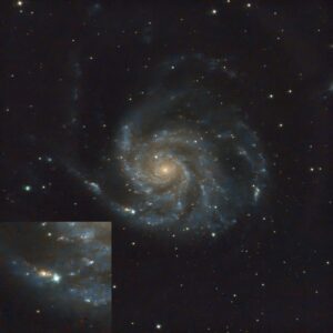 Anche l’elaborazione ha presentato delle sfide, legate alle peculiarità dello strumento di ripresa. Ho acquisito 246 scatti da 10”, selezionandone solo 140 per lo sviluppo e l’elaborazione. Li ho integrati in 8 masterlights da 5 minuti l’uno; di questi ho sommato i migliori 5 nell’immagine finale utilizzata in post-prod.