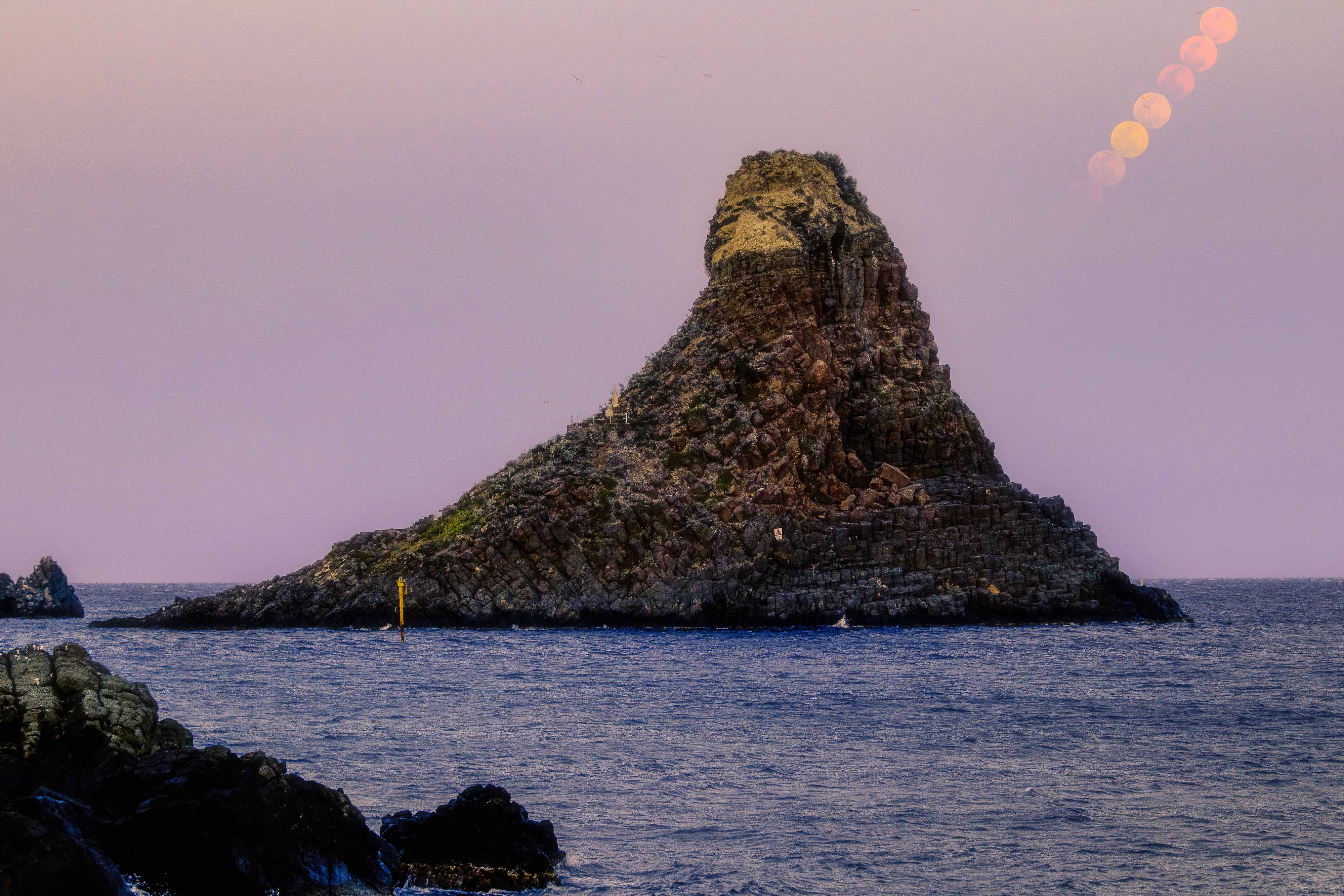 La Luna piena di Marzo vista dai faraglioni di Aci Trezza