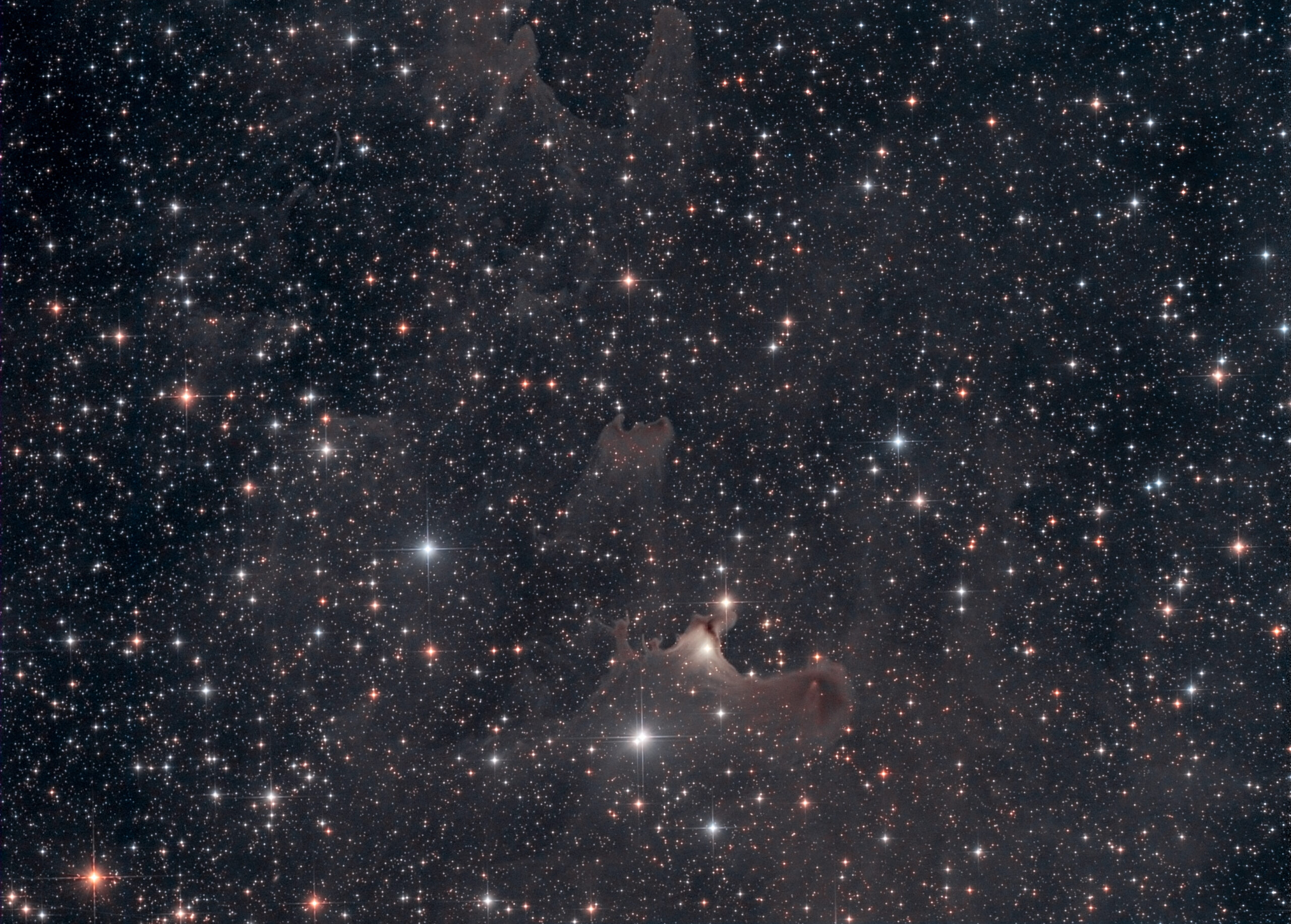 Intricati e deboli cirri di gas caratterizzano questa zona polverosa di cielo.