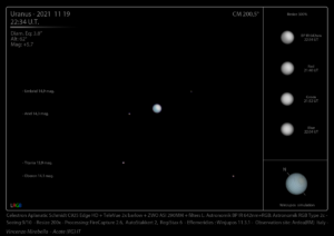 L’immagine mostra il sistema stellare binario Procione, fotografato da Ardea(RM) il 5 aprile 2025 con un telescopio newton da 406 mm di apertura, modificato con ragno dello specchio secondario a 3 razze tangenziali.