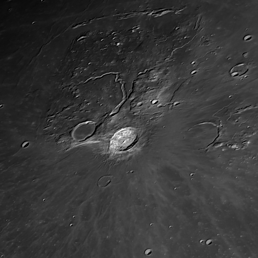 Aristarco, è un prominente cratere lunare da impatto situato a nord-ovest della faccia visibile della Luna. È considerata la più chiara tra le grandi formazioni sul suolo lunare, con un’albedo maggiore del doppio della maggior parte delle altre formazioni. Il cratere è chiaro abbastanza da essere visibile ad occhio nudo e ancor più attraverso l’uso di un telescopio. È ancora più facile identificarlo quando gran parte della superficie lunare è illuminata dal riflesso della Terra