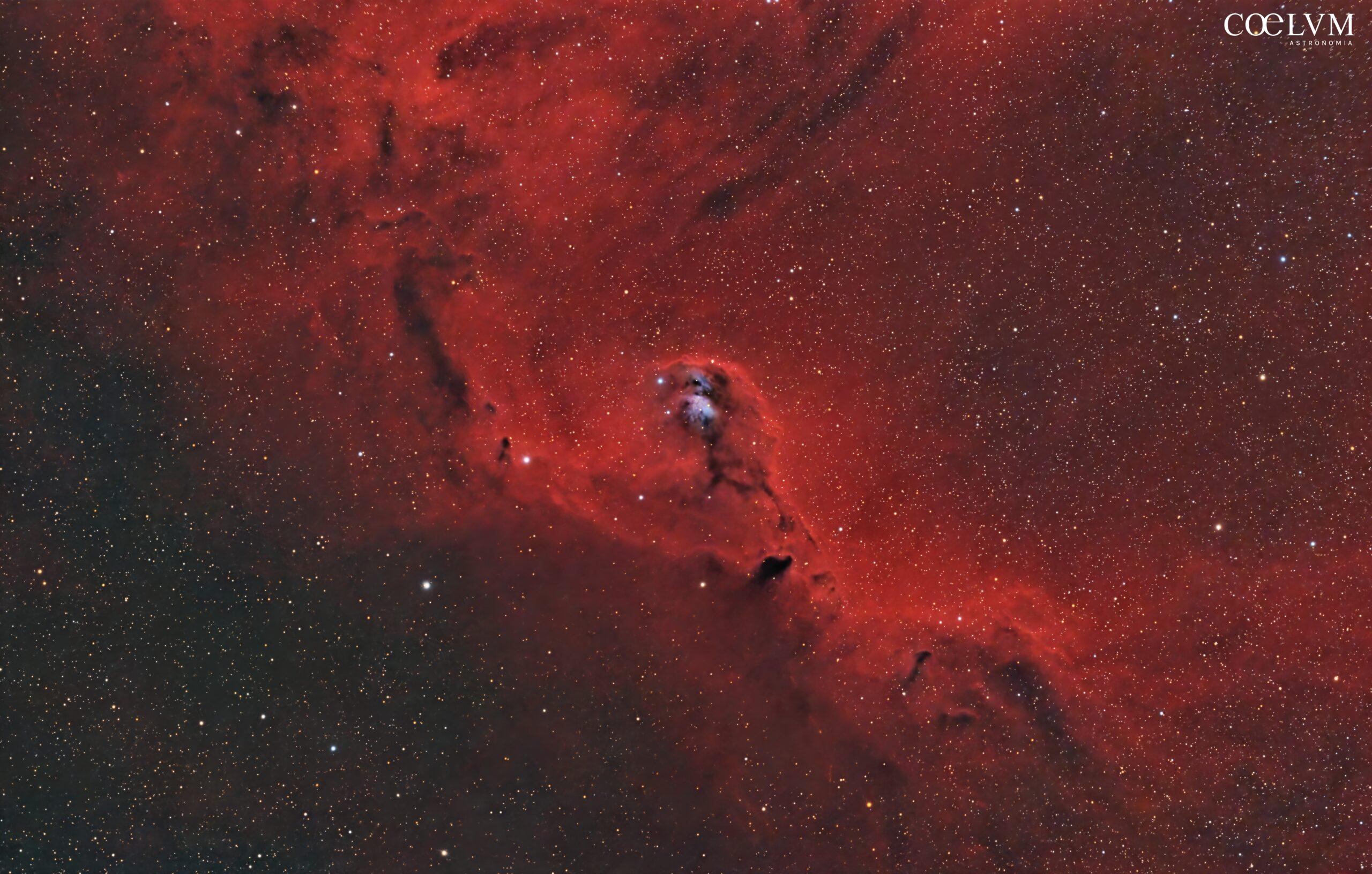 In Orione, una piccola nebulosa a riflessione (Cederblad 51) dalla tonalità azzurrognola è immersa in un mare di idrogeno ionizzato solcato da addensamenti di polveri interstellari. Ripresa con rifrattore apocromatico Askar FRA 600, ZWO 2600 mc pro camera e filtro Player one Ha-Oiii.