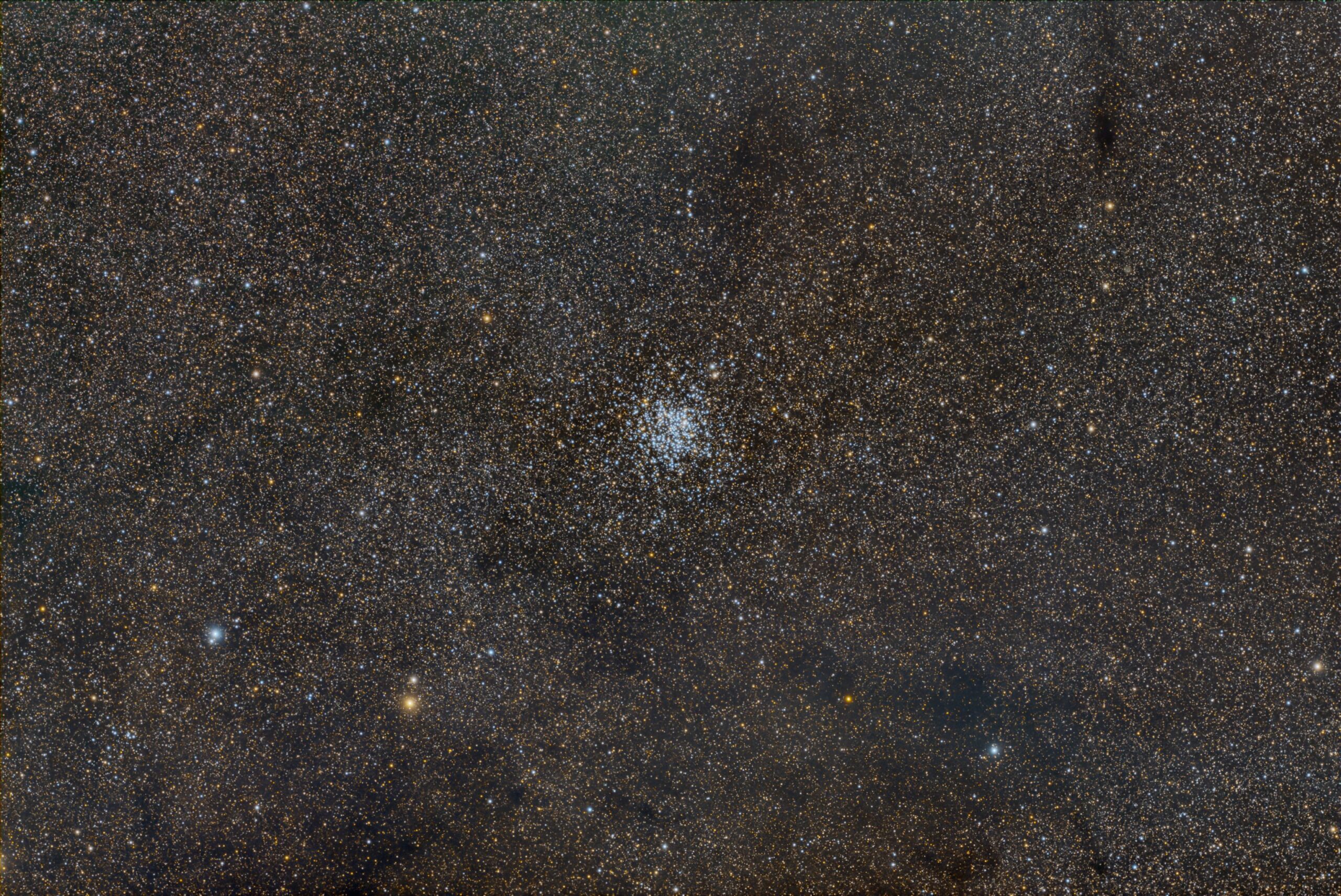 M11 è uno dei più belli e ricchi ammassi aperti. Si individua nella costellazione dello Scudo. Dista circa 6000 al ed è molto giovane avendo un’età stimata di 250 milioni di anni. La ripresa è stata effettuata con il rifrattore apo Askar 107PHQ, la camera ASi 2600 mc pro, il filtro Antlia Quad Band e la montatura AM5N per circa 3 ore di integrazione.