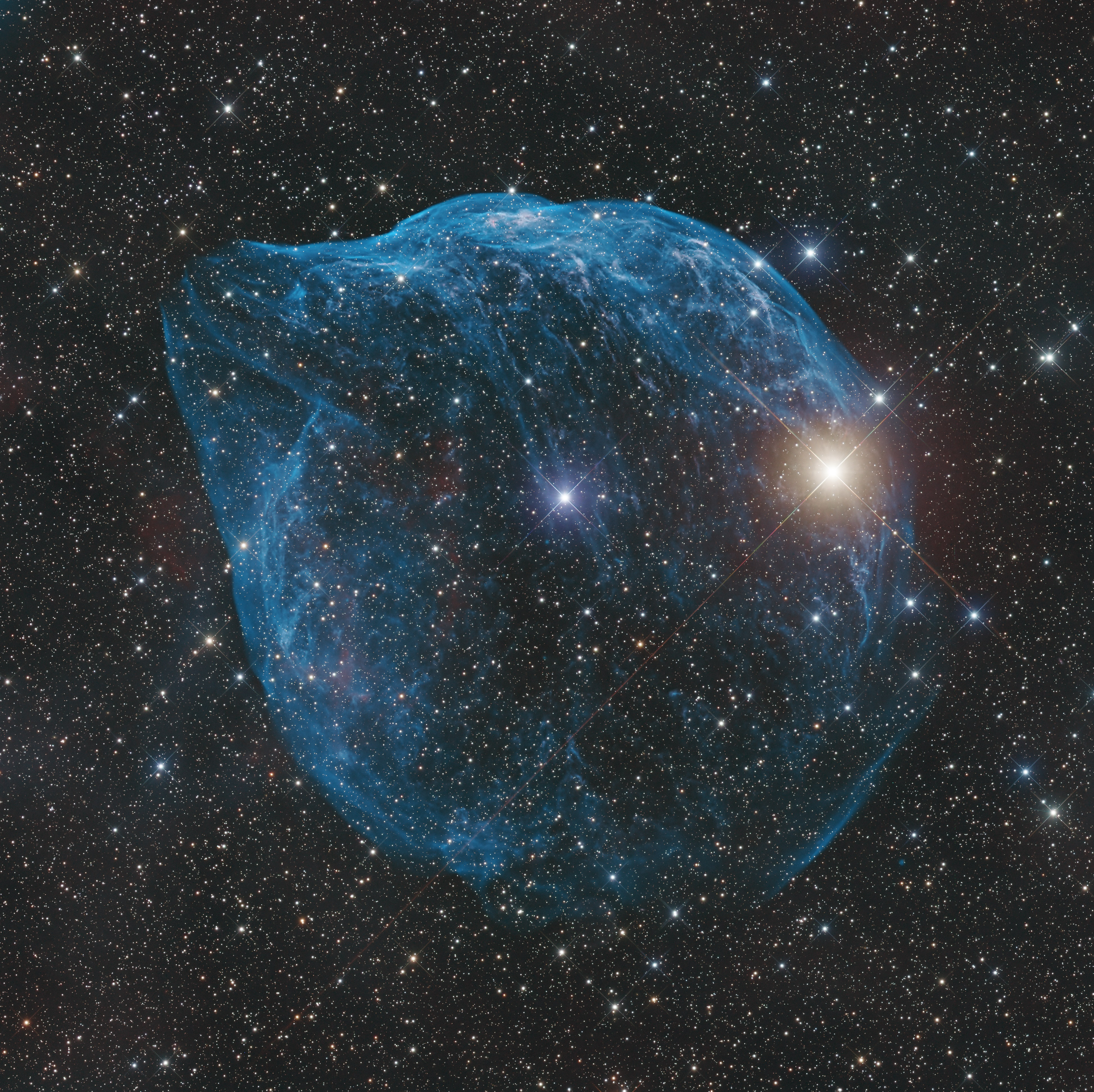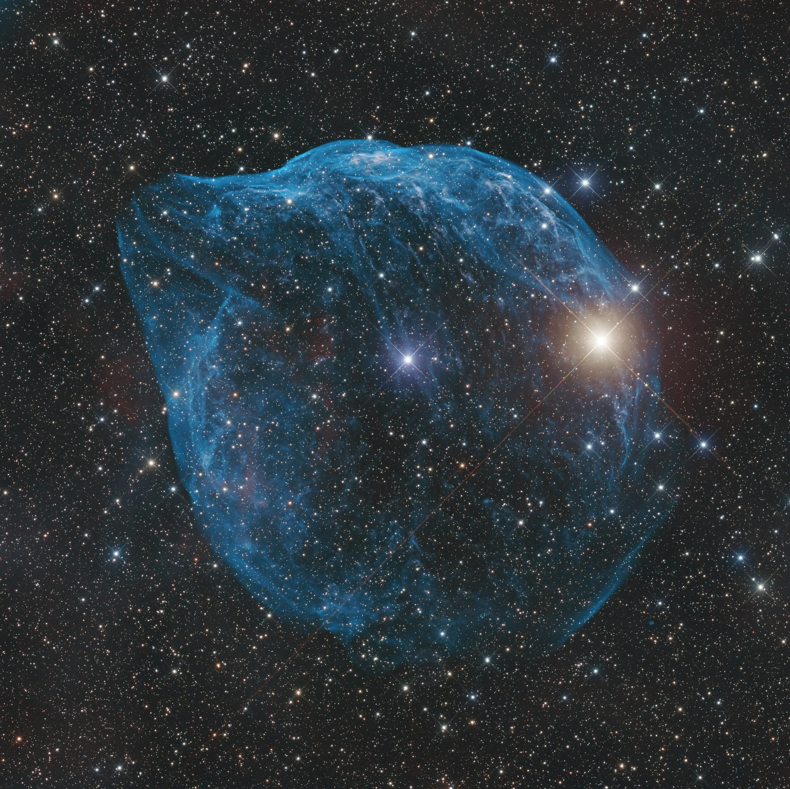 Grazie alle formule di Bill Blanshan per la normalizzazione dei canali a banda stretta e il trasferimento delle stelle RGB su NB, ho ottenuto un risultato che mi lascia molto soddisfatto. Sperando di poter ritornare un giorno su questo oggetto con un maggior numero di pose, vi saluto e vi auguro cieli sereni