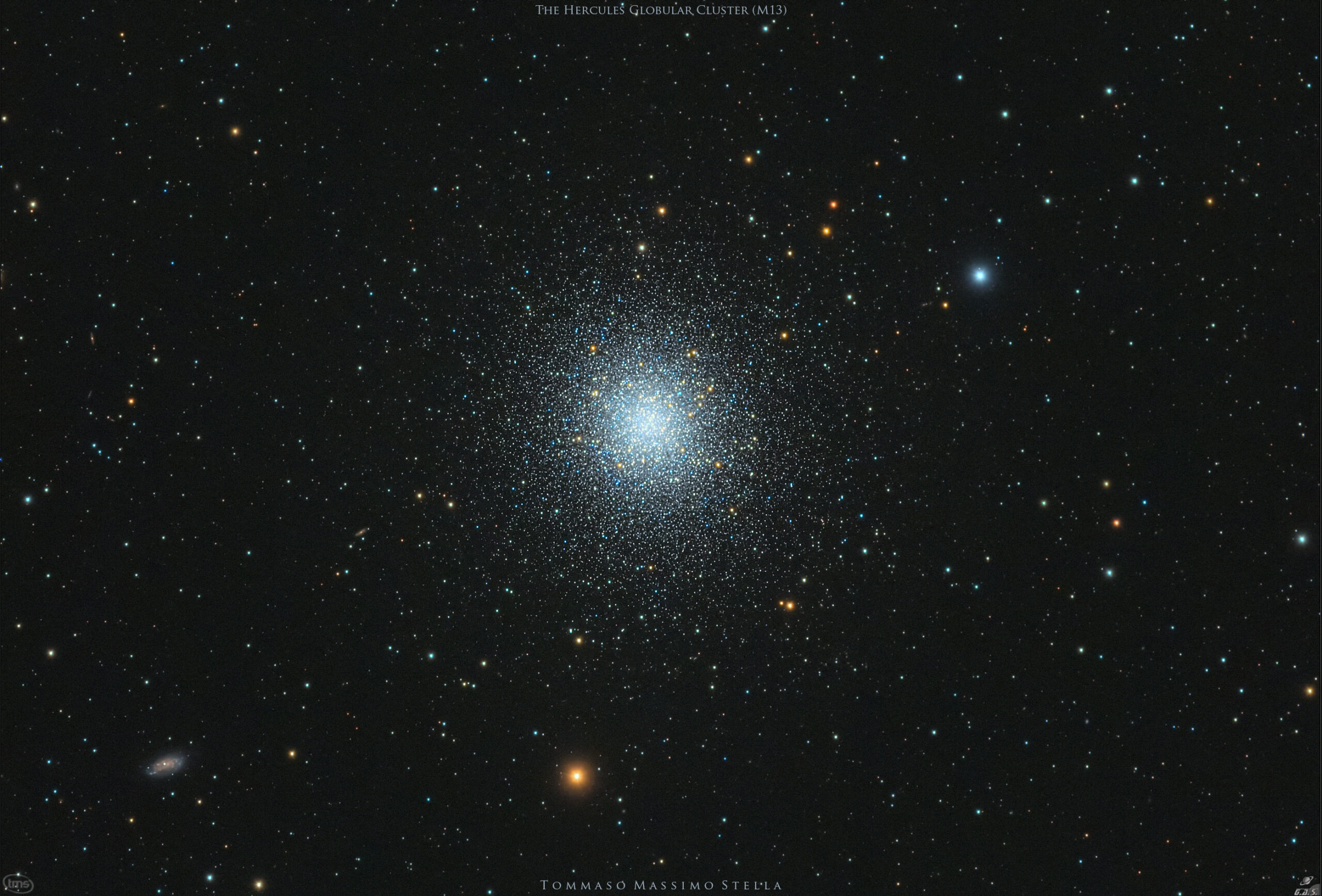 Il re degli ammassi stellari globulari nel nostro emisfero, M13 è individuabile nella costellazione di Ercole e osservabile anche a occhio nudo sotto cieli bui.