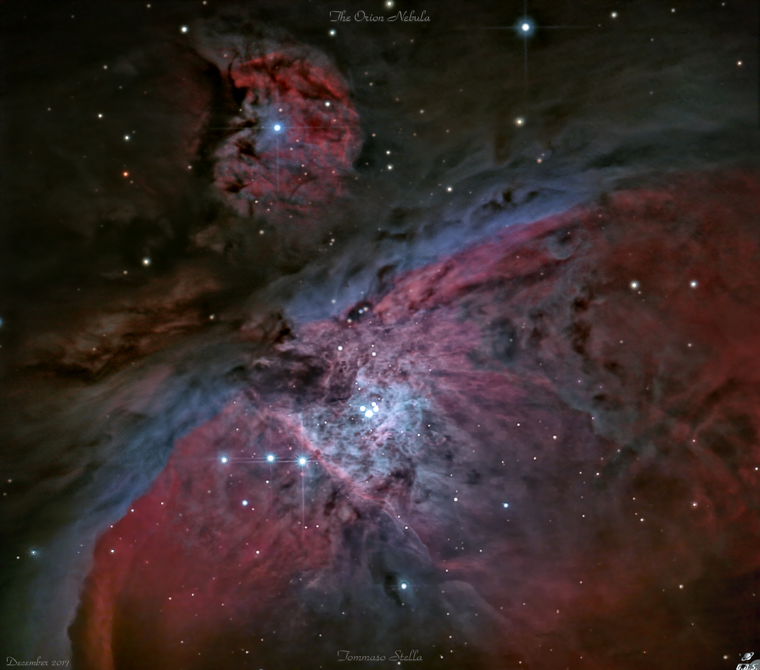La sfida era quella di ottenere ottimi dettagli del Trapezio di Orione quindi ho utilizzato la tecnica delle pose brevi (1879 da 2"), non guidate. La foto è il risultato di due pannelli acquisiti con una camera planetaria (ASI 224mc) che ha un sensore molto piccolo (6mm).