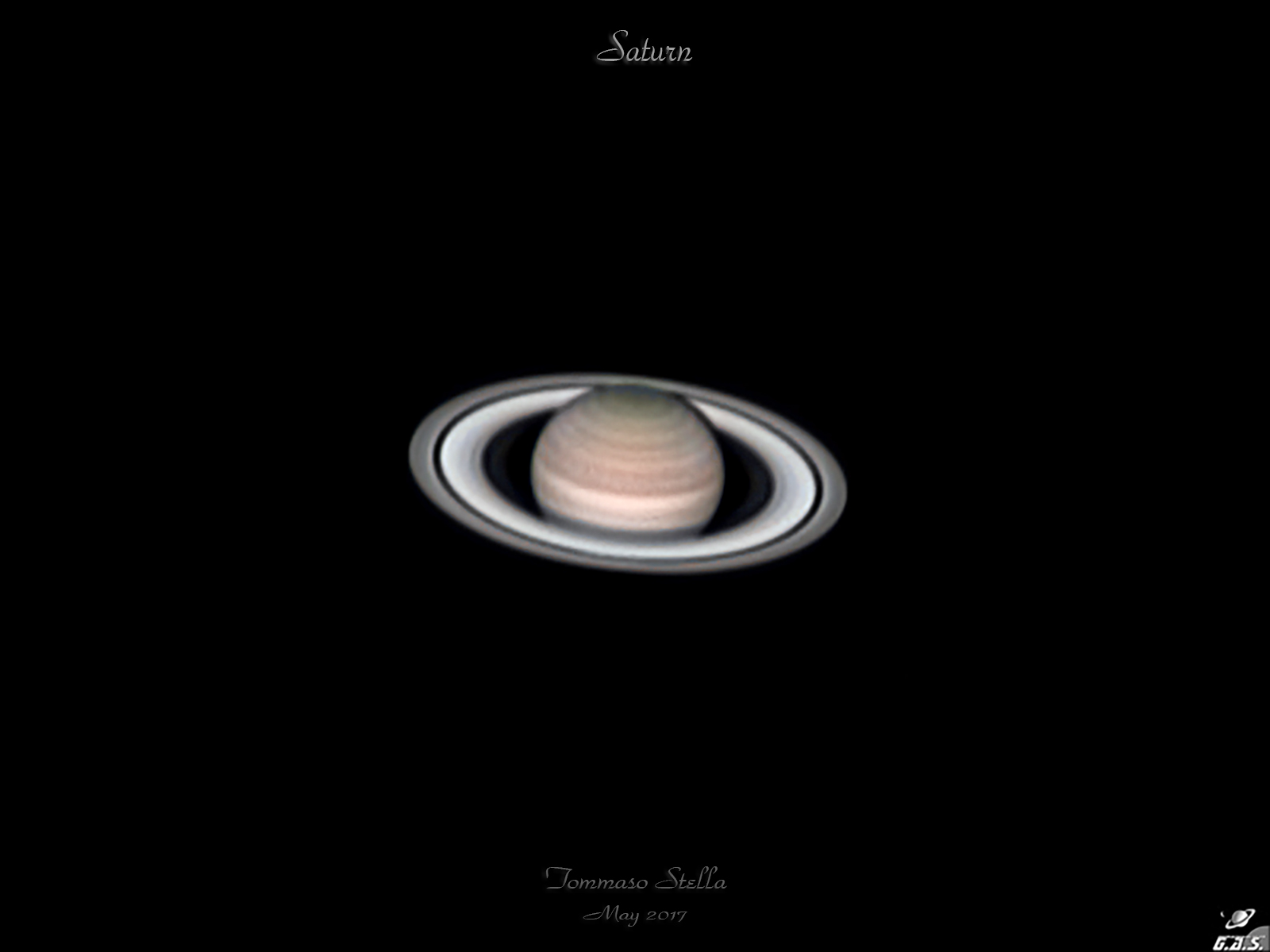 337 frames da 52ms di esposizione con gain 63 acquisiti con ZWO ASI 120mc al fuoco diretto del Newton GSO 250/1250.