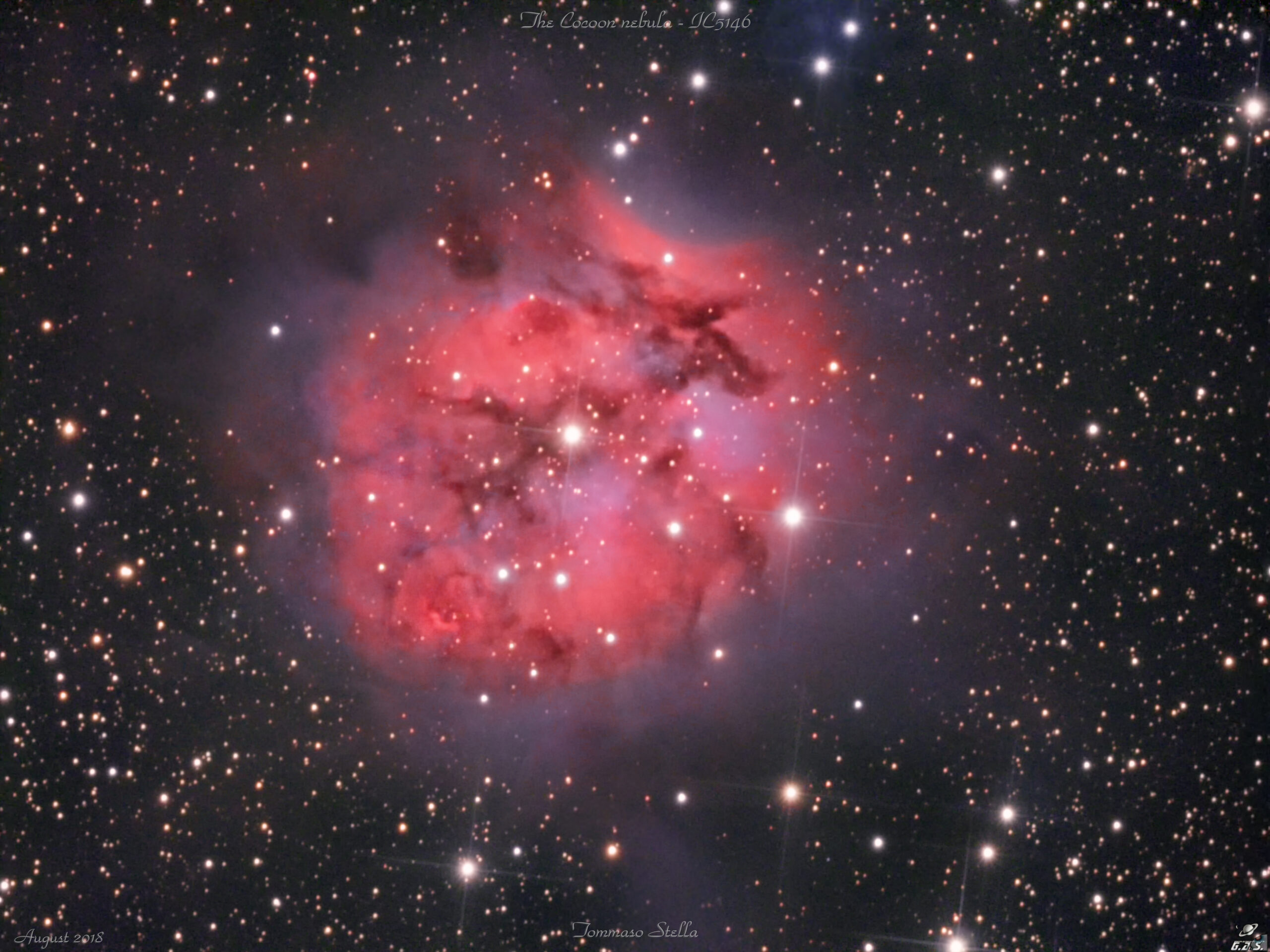 La nebulosa "Bozzolo" (Cocoon) dista circa 3300 anni luce dal nostro sistema solare e circonda l’ammasso aperto IC 5146 che è zona di formazione stellare molto attiva.
