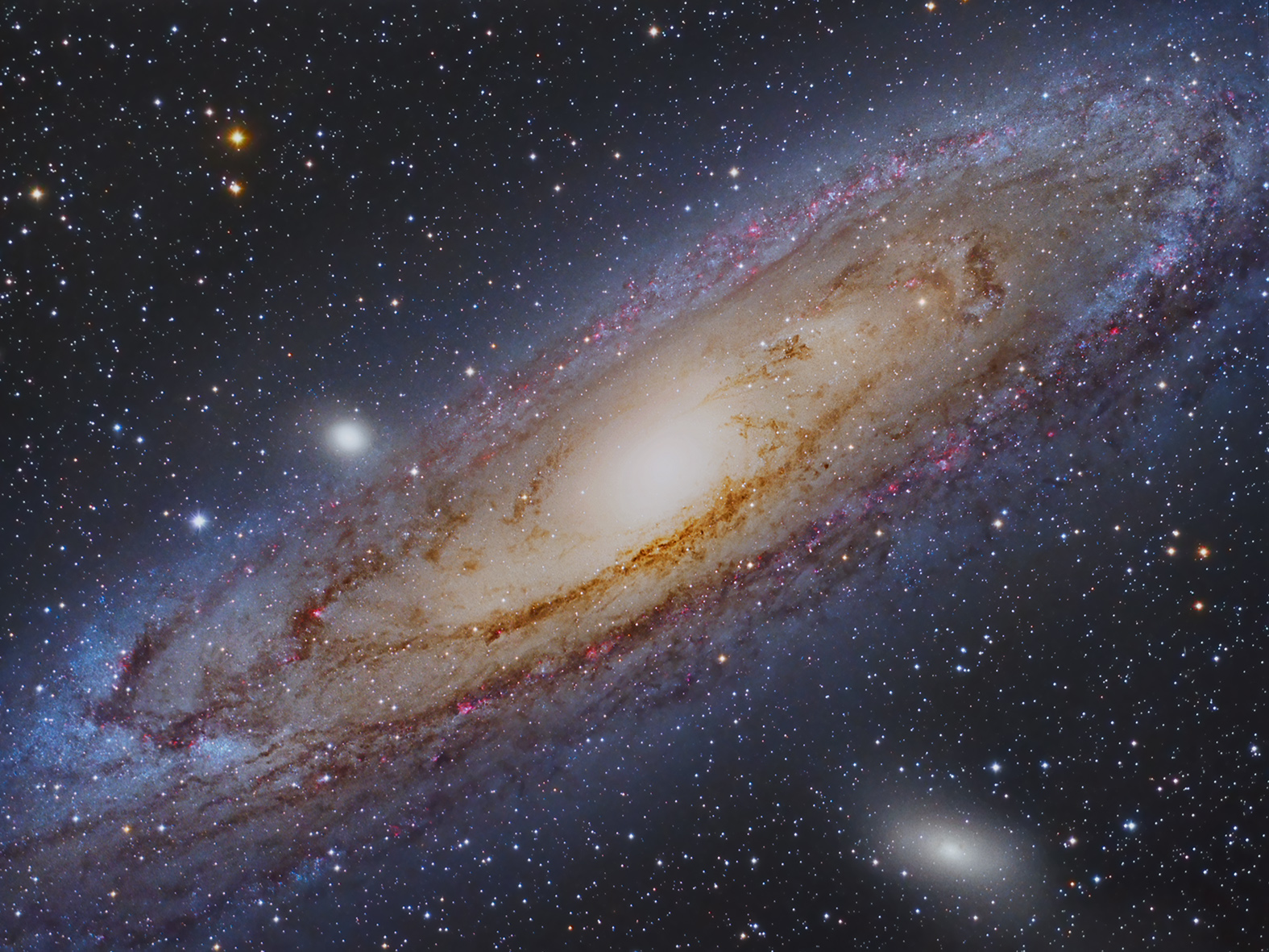 La Galassia a spirale di dimensioni apparenti maggiori tra quelle visibili, fa parte del gruppo locale insieme alla nostra Via Lattea e alla Galassia M33 nel Triangolo. Nella foto sono riprese anche le compagne minori M32 ed M110.