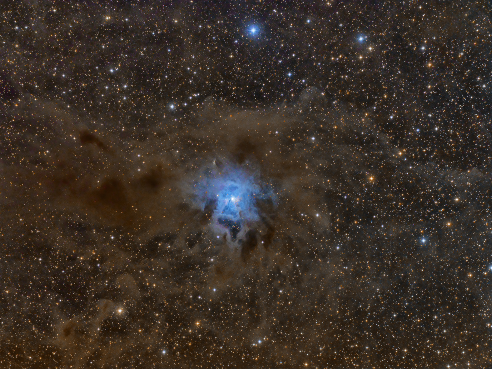 NGC7023, meglio conosciuta come Iris Nebula, è una nebulosa a riflessione nella costellazione di Cefeo, circondata da un bozzolo di polveri. Campo molto bello fotograficamente.