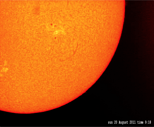 finalmente sono comparse alcune macchie solari e sono riuscito a vederle attraverso il mio nuovo telescopio solare Lunt LS60THa 0.75A B1200. Immagine acquisita tramite webcam spc900 + filtro ir + k3ccd ed elaborata con photoshop.