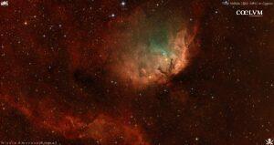 Questa immagine della Nebulosa Aquila (Messier 16), celebre per i suoi “Pilastri della Creazione”, è stata realizzata fondendo dati in HOO (Hα, OIII) con l’infrarosso vicino (NIR), svelando strutture nascoste alla vista nel visibile.
