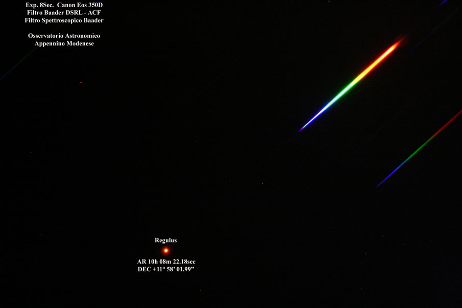 Spettro della stella Regulus ripresa da Montefiorino (MO). Come la foto precedente è stato usato il tempo di esposizione di 8Sec. calcolato in base all’articolo apparso su Coelum.