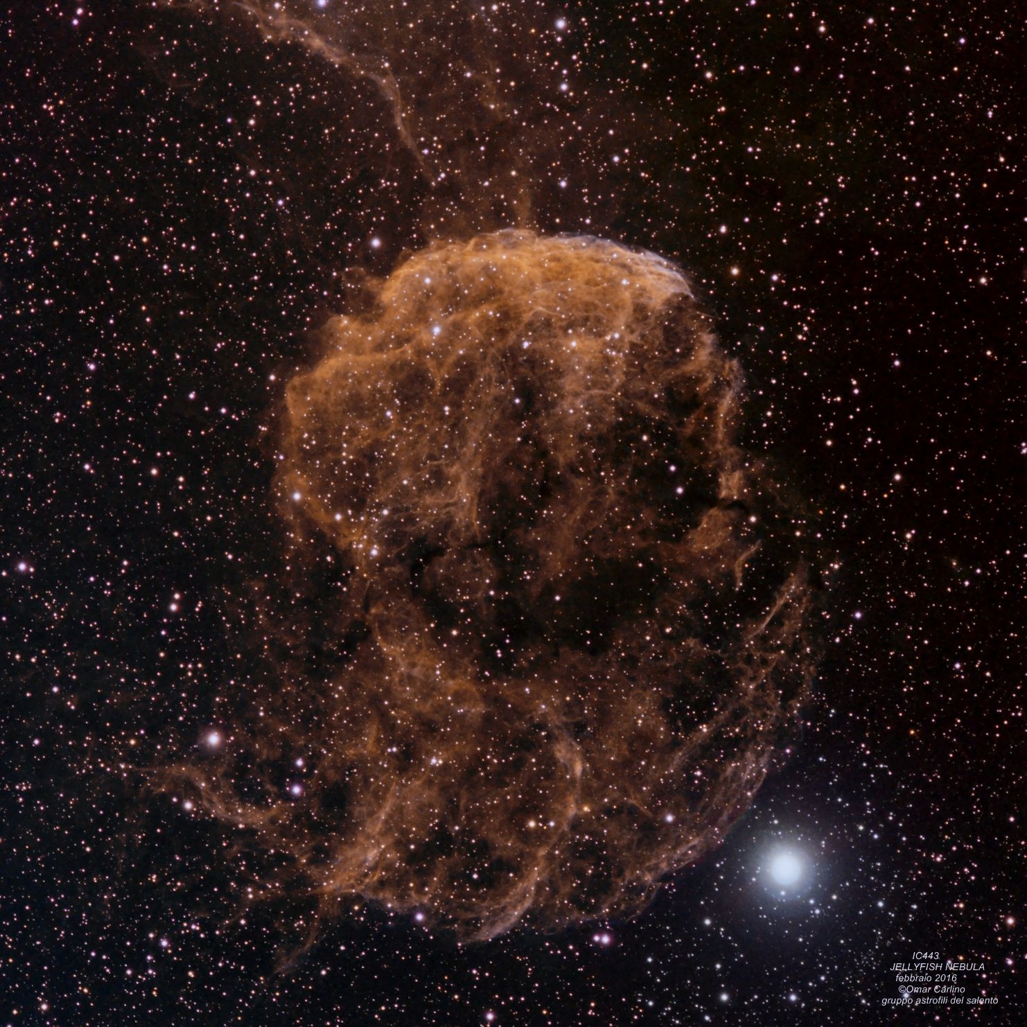 simile ad una medusa nel cielo notturno, ripreso ed elaborato con la tecnica hubble palette