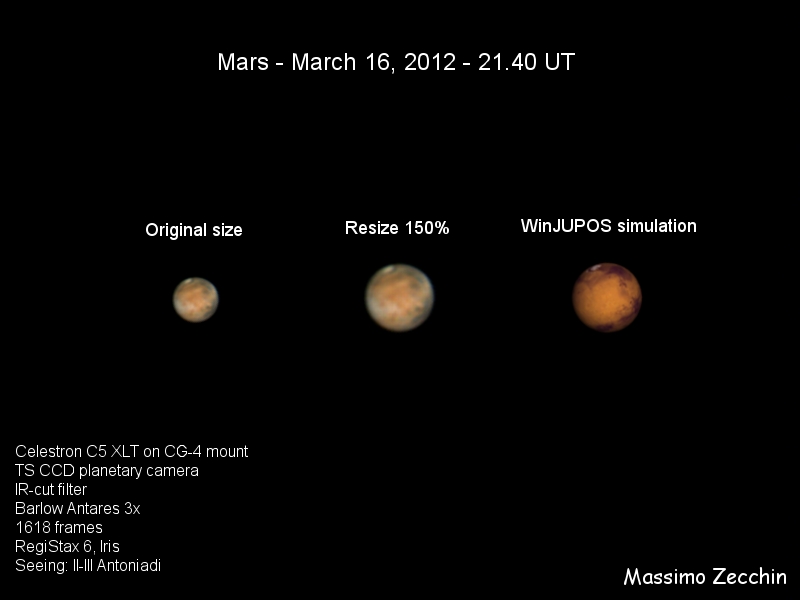 Somma di 1618 frames, elaborazione con RegiStax 6 e Iris