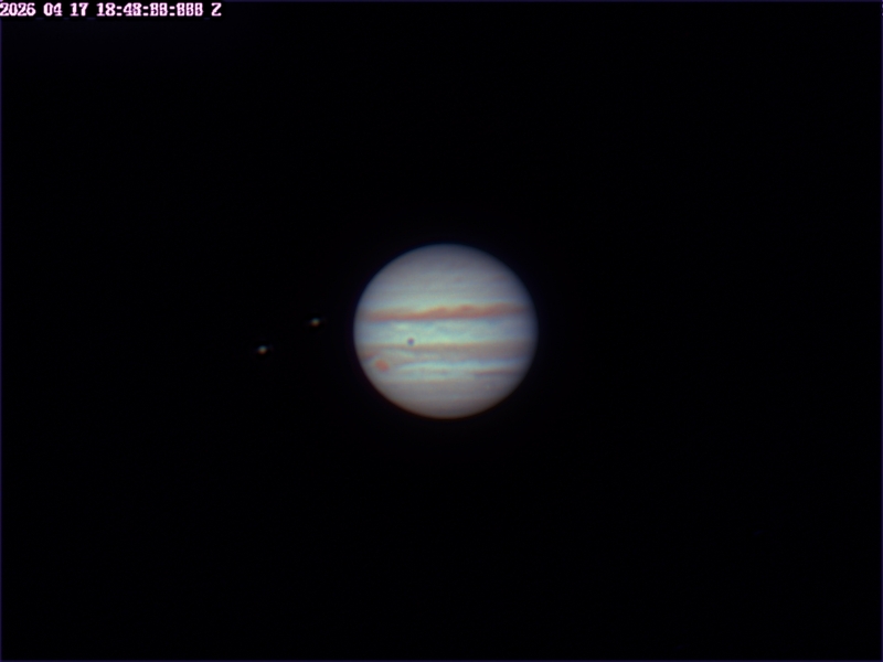 Pianeta Giove con eclisse di Io e macchia rossa , Callisto più esterno. Zenithstar 110′ mm William Opt. Barlow 4x iCAM464C Montatura 10 Micron GM3000 acquisizione con SharpCapPro elaborazione Registax, Wavesharp 3 e PixInsight
