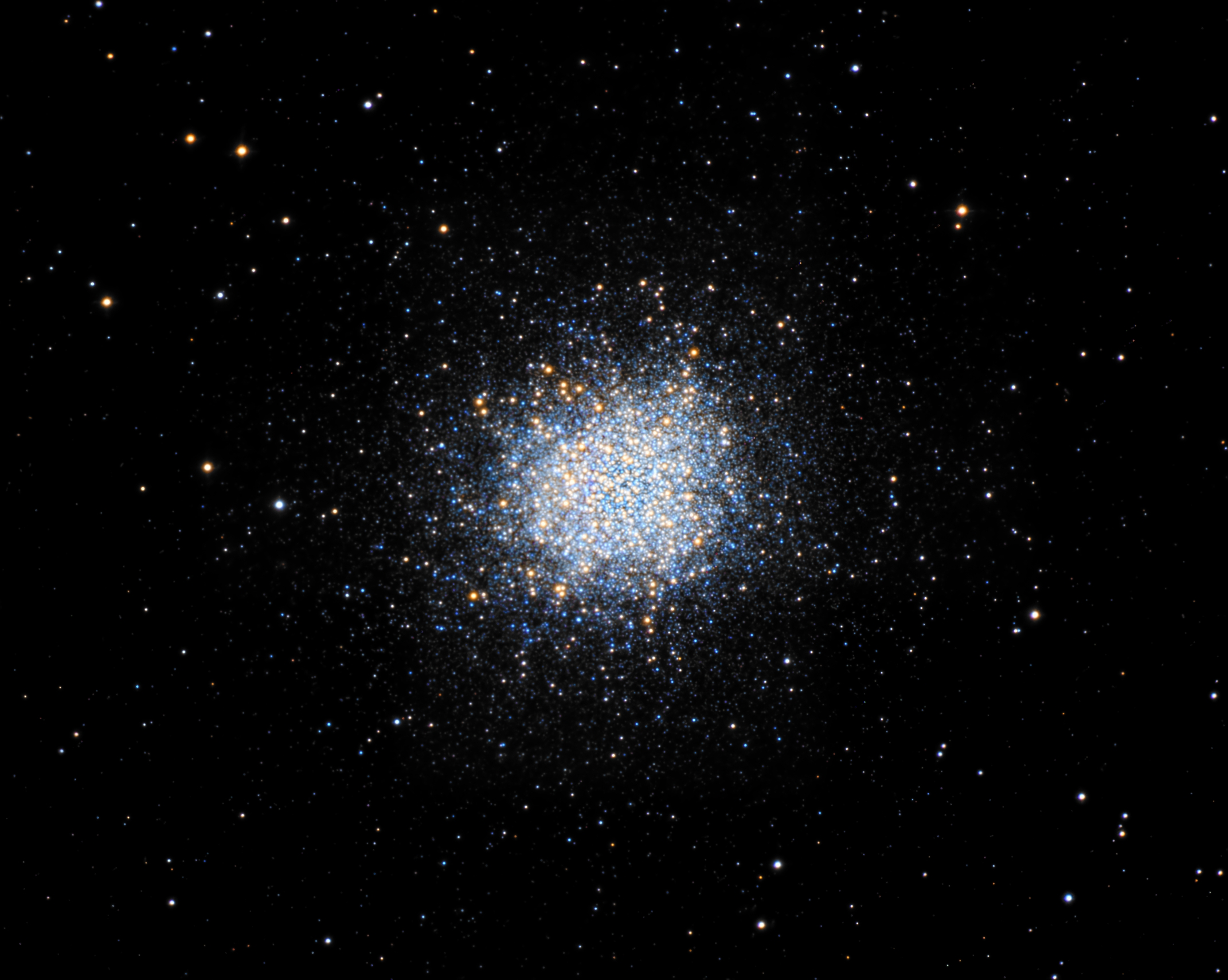 M13 o NGC 6205 ammasso globulare in Ercole, ha un diametro di circa 145 anni luce. M13 è composta da diverse centinaia di migliaia di stelle, con stime che variano da circa 300.000 a oltre mezzo milione. Le stelle di questo ammasso sono nella categoria di Popolazione II, con minor presenza di metalli rispetto alle stelle di Popolazione I come il Sole. dati di acquisizione: CDK 17″ CCD Moravian G3 16200 Montatura GM3000 della 10 Micron. Filtri RGB 12 min per canale. Software MaxIm Pro 6 , PixInsight.