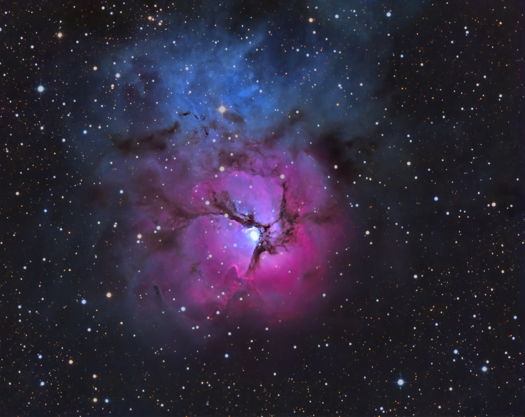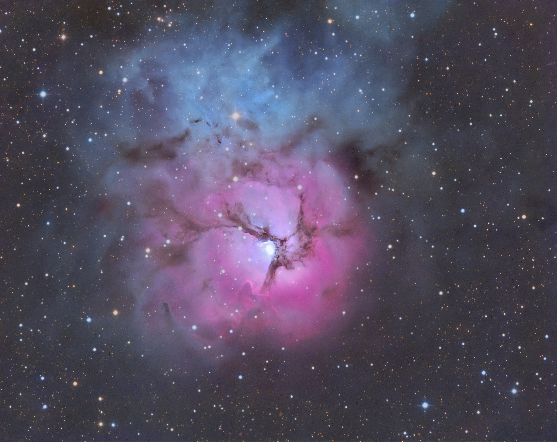 M20 nebulosa nel sagittario NGC 6514 nebulosa ad emissione Ripresa con CDK 17 ” CCD Moravian G3 16200 montatura GM3000 10micron. Acquisizione con MaxIm DL Pro 6 Elaborata con PixInsight. RGB 85 min totali con frames da 300s