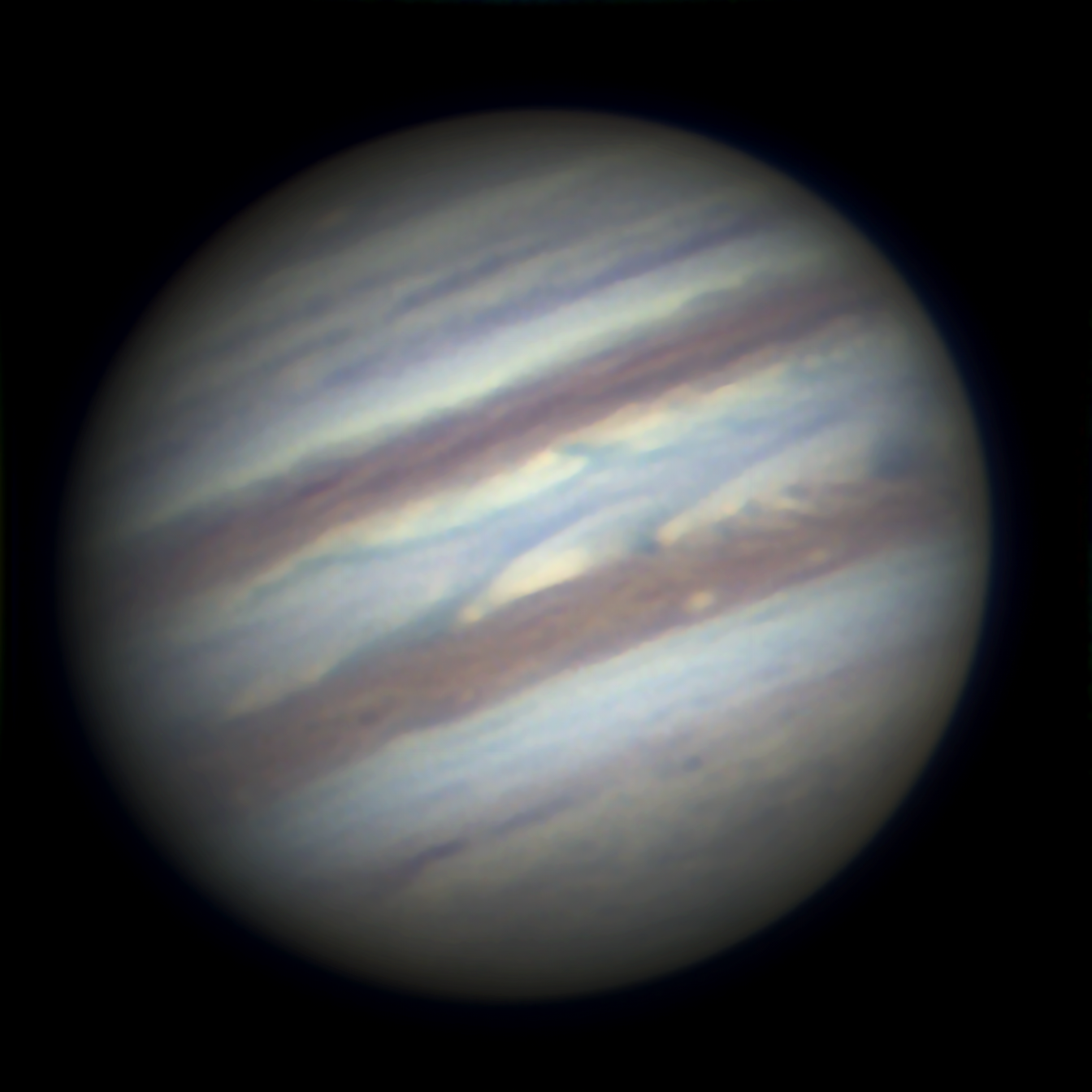 Ripresa di Giove effettuata nell’agosto 2024 con C8 Edge, Zwo Asi 224, ADC e Barlow 2x. Il seeing eccezionale di quella serata ha permesso di catturare dettagli e una definizione che solitamente si ottengono con telescopi di maggiore diametro.