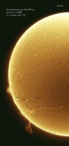 Qualche sera fa, quando il software di acquisizione proponeva tra i tanti oggetti del cielo qualcosa di insolito con una sigla improponibile, ero inizialmente titubante se riprendere o meno: se è sempre facile andare sul sicuro e riprende nebulose o galassie tra le più celebri, è sempre un rischio riprendere oggetti poco noti, con l’incognita del risultato finale. Questo oggetto era catalogato addirittura come stella, e la sua sigla era HIP 95428. Ci trovavamo nel profondo della Costellazione della Volpetta, ma il vero spettacolo doveva ancora arrivare. Ripresi i miei lights e i files di calibrazione e andai a dormire. L’indomani elaborai tutto quanto, e il risultato fu questo: milioni di stelle dall’aspetto aureo, con al centro la stella sopracitata con quell’aspetto azzurro. Si trattava in realtà di una nebulosa a riflessione: VDB 126 o Lochness Nebula. Credo sia valsa la pena! Askar 120 Apo ridotto a f/5,6 Zwo ASI 2600 MC PRO Optolong L-Quad Enhance Touptek 250 AR guide Zwo 120 mini mm EAF Asiair plus Celestron Avx 30 lights da 200″ 13 darks 21 biases 20 flats Software: Siril Photoshop