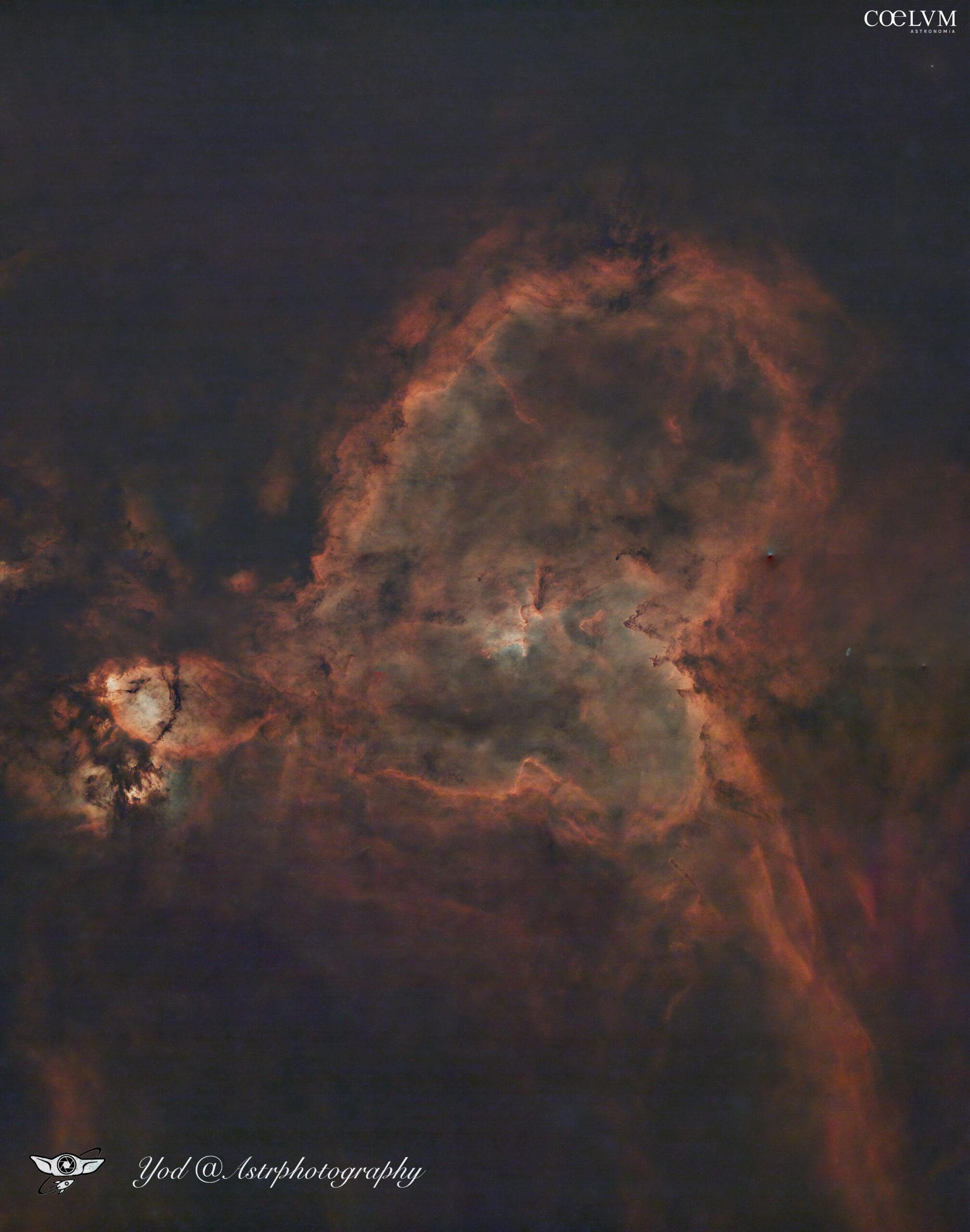 Nebulosa IC1805, nota come Nebulosa Cuore, si posiziona accanto alla nebulosa Anima nella costellazione di Cassiopea. al suo centro abbiamo l’ammasso aperto denominato Melotte 15, ricchissimo di stelle giovani e massicce. Possiamo trovare anche la Nebulosa NGC 896, detta testa di Pesce. Soggetto per me spettacolare, in quanto le formazioni nebulari al centro di Melotte 15 mi affascinano davvero moltissimo, e mi ricordano i Pilastri Della Creazione. Dal giardino di casa con Omegon 72/400 pro apo, Giordano 294C, filtro Enhance di Optolong, circa 10h a pannello per un totale di 2 pannelli.